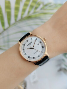 Đồng hồ nam SUNRISE 1257PA mang phong cách Thụy Sỹ tinh tế, là lựa chọn lý tưởng cho quý ông yêu thích sự thanh lịch và hiện đại. Mặt số trắng trang nhã kết hợp viền vàng hồng (Rosegold) thời thượng tạo nên điểm nhấn sang trọng, dễ thu hút ánh nhìn. Dây da đen cao cấp giúp tổng thể trở nên lịch lãm, phù hợp với nhiều phong cách thời trang từ công sở đến sự kiện trang trọng. Đường kính mặt 40mm cùng độ dày 7.2mm mang lại cảm giác đeo cân đối, nam tính.
