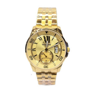 Đồng hồ nam Sunrise Viền Vàng Mặt Vàng Dây Nâu 1257PA-GW-LBr