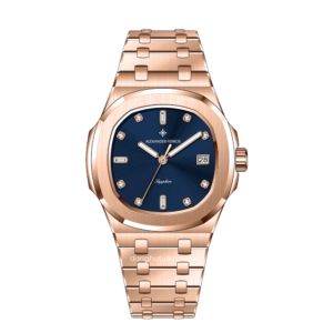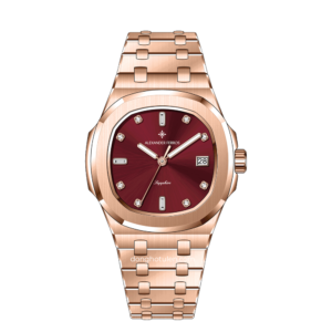 Toàn bộ phần dây và vỏ máy được chế tác từ chất liệu thép không gỉ 316L cao cấp bền bỉ theo thời gian mà còn giữ được độ sáng bóng, chống oxy hóa và ít bị trầy xước. Tông màu nâu đặc sắc trên mặt số – kết hợp hài hòa với dây đeo mạ vàng hồng bóng bẩy.