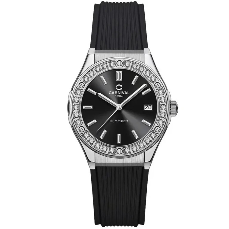 Đồng hồ nữ Carnival 8168L2-VT-DCS-D với form dáng cực kì giống với Hublot nhưng giá cả hợp túi tiền hơn rất nhiều, còn được biết đến nhiều với tên gọi tiểu Hublot Carnival hay bản dupe Hublot nữ. Được trang bị dây cao su, viền đính đá đẹp mắt và sang trọng.