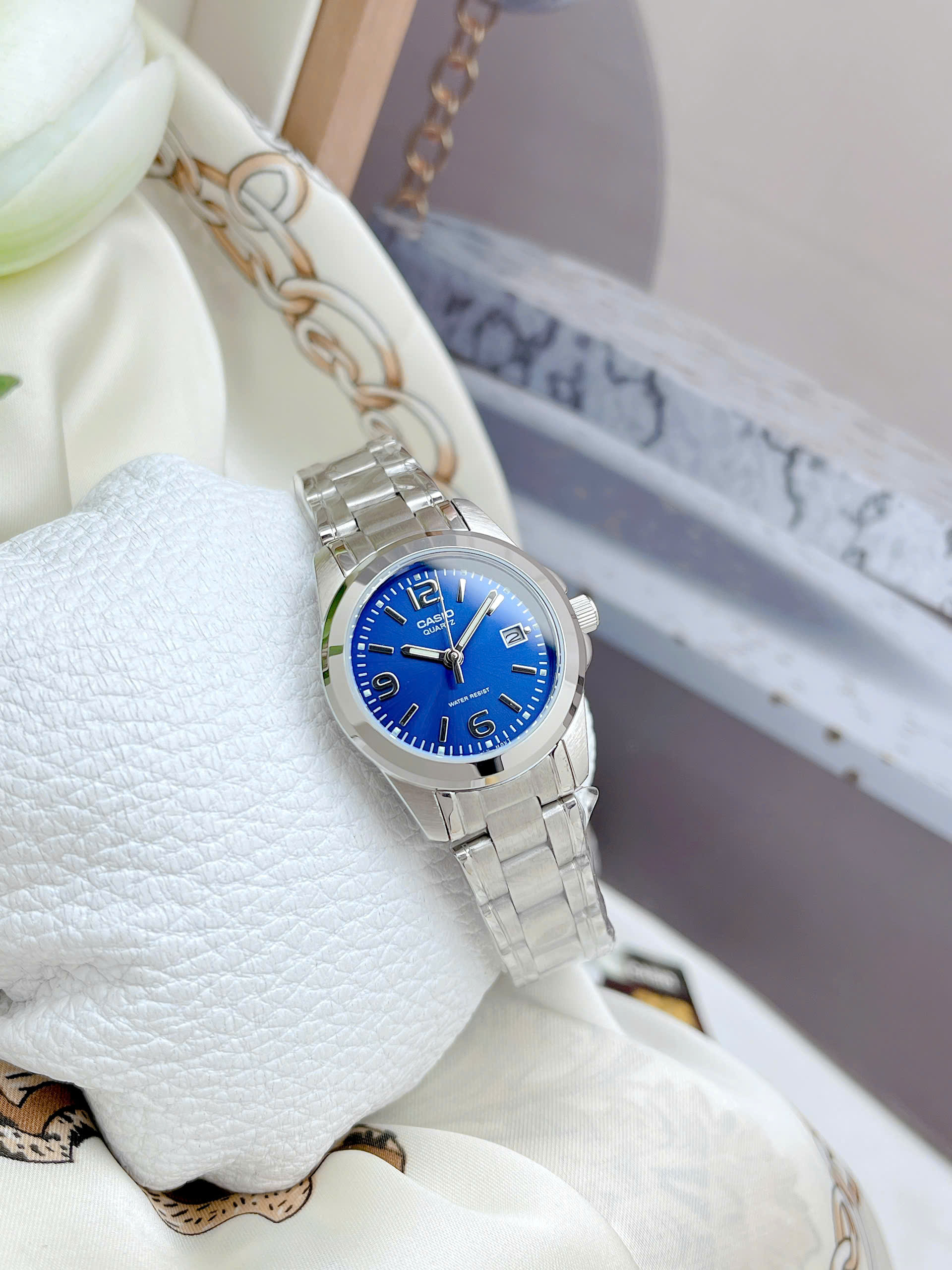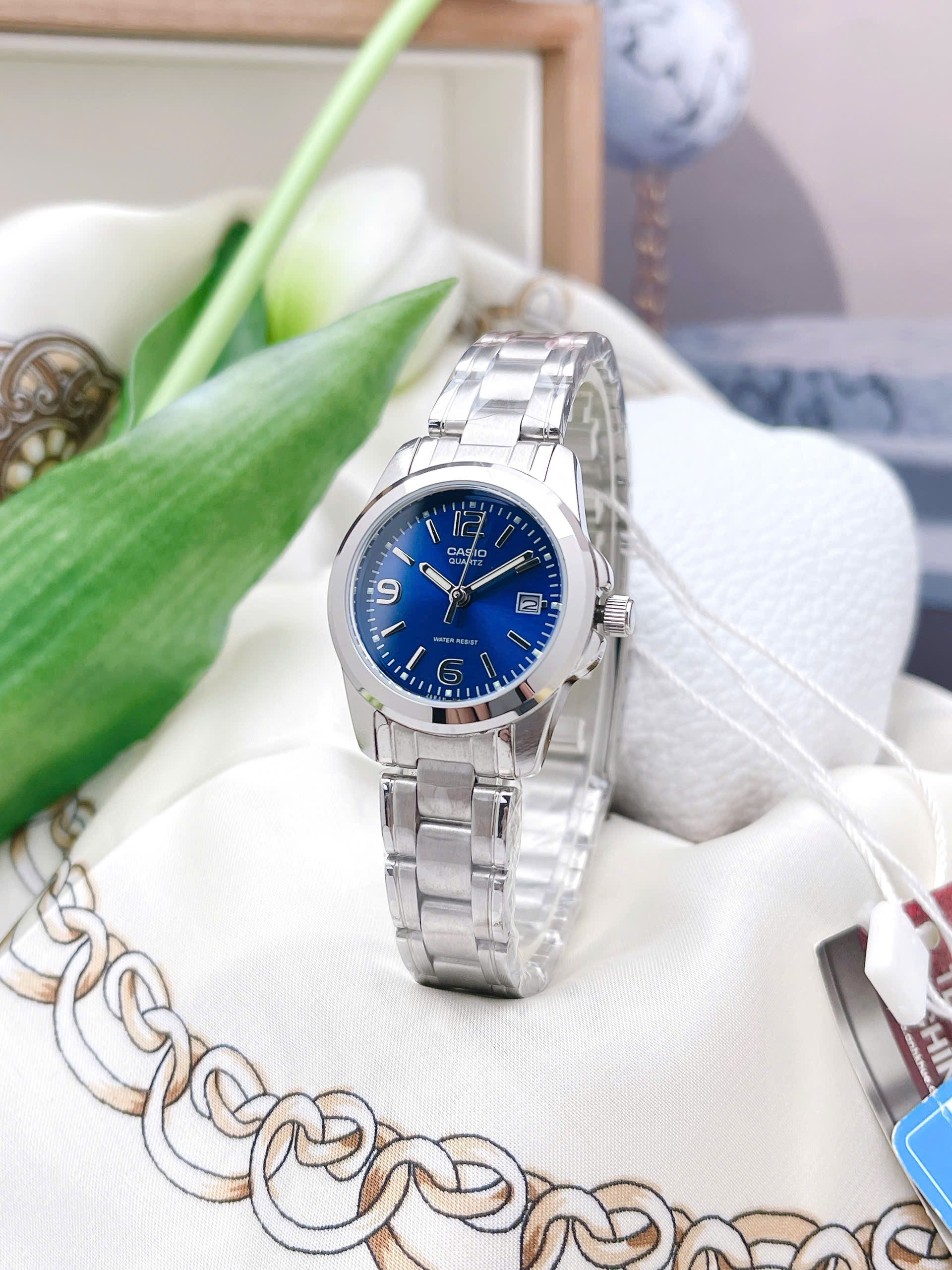 Đồng hồ nữ Casio LTP-1215A-2ADF mang đến vẻ đẹp thanh lịch và hiện đại, rất phù hợp cho những quý cô yêu thích phong cách tinh tế nhưng không kém phần nổi bật. Điểm nhấn ấn tượng nhất của thiết kế này chính là sự kết hợp hài hòa giữa lớp vỏ và phần dây đeo bằng kim loại màu bạc sáng bóng cùng mặt đồng hồ màu xanh dương vô cùng thời trang. Sắc xanh trẻ trung không chỉ làm bừng sáng cổ tay phái đẹp mà còn giúp chiếc đồng hồ dễ dàng phối hợp với nhiều loại trang phục khác nhau, từ đồ công sở chỉn chu đến những bộ váy áo dạo phố năng động.