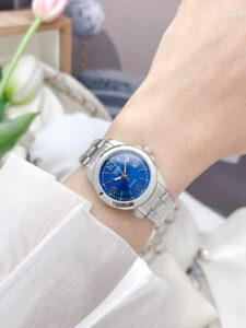 Về mặt vận hành, phiên bản này sử dụng bộ máy Quartz (chạy bằng pin) truyền thống mang tiêu chuẩn chất lượng của Nhật Bản, đảm bảo độ chính xác cao về mặt thời gian và tuổi thọ hoạt động bền bỉ. Người dùng sẽ không phải lo lắng về việc lên cót hay điều chỉnh giờ thường xuyên như các dòng đồng hồ cơ. Bên cạnh đó, chiếc đồng hồ còn được trang bị mức chống nước cơ bản 3 ATM. Nhờ vậy, các chị em có thể hoàn toàn yên tâm và thoải mái đeo đồng hồ khi rửa tay hoặc đi dưới những cơn mưa nhỏ mà không sợ làm ảnh hưởng đến các linh kiện bên trong.
