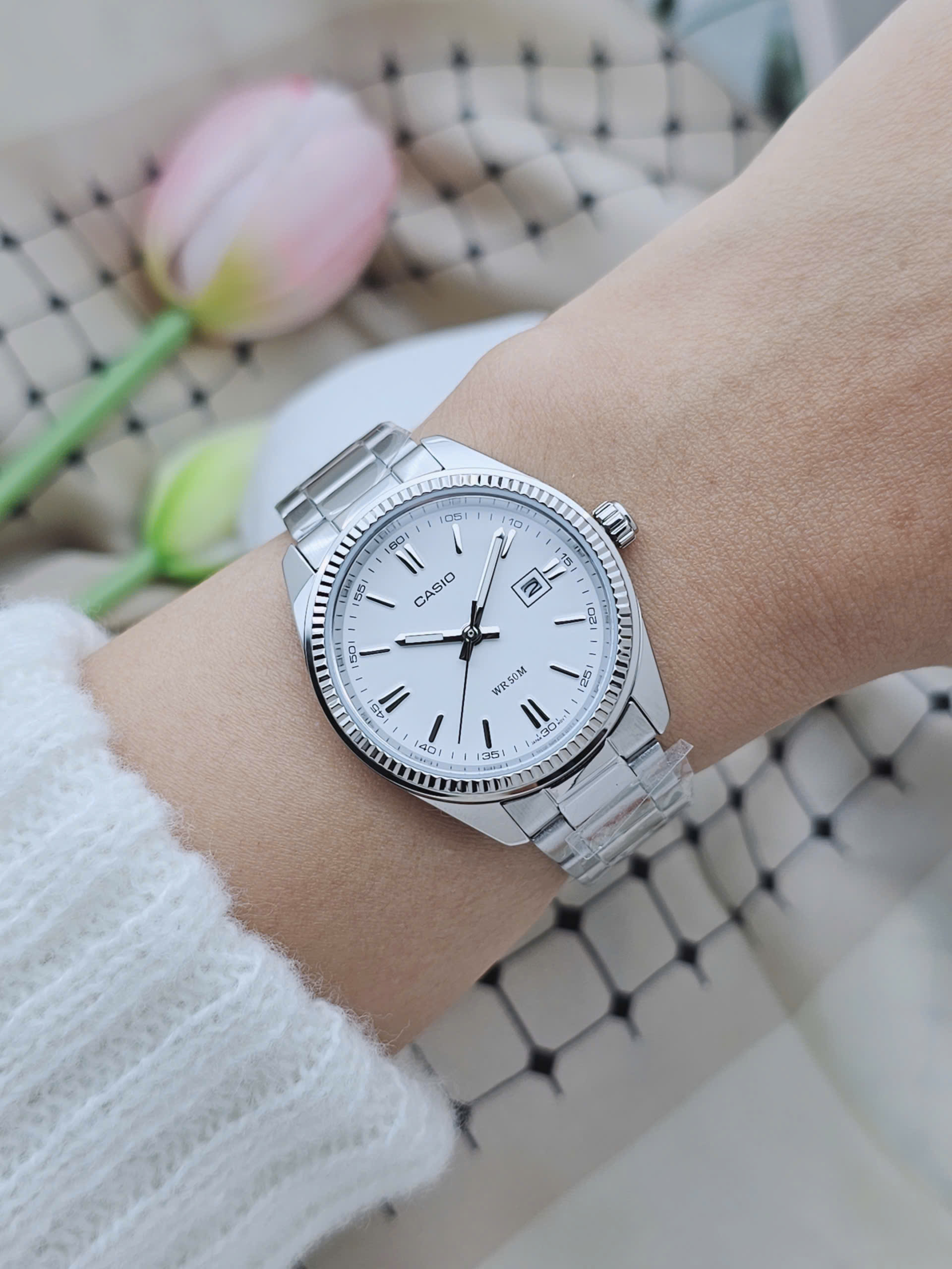 Đồng hồ nữ CASIO LTP-1302D-7A1VDF là mẫu thiết kế thanh lịch đến từ thương hiệu Casio Nhật Bản, phù hợp với phong cách công sở và sử dụng hằng ngày. Sản phẩm nổi bật với mặt số màu xám tinh tế, kết hợp vỏ kim loại phủ ion và dây thép không gỉ màu bạc sang trọng. Đường kính mặt 30mm cùng độ dày 8mm giúp đồng hồ ôm tay gọn gàng, tôn lên vẻ nữ tính và hiện đại cho người đeo.