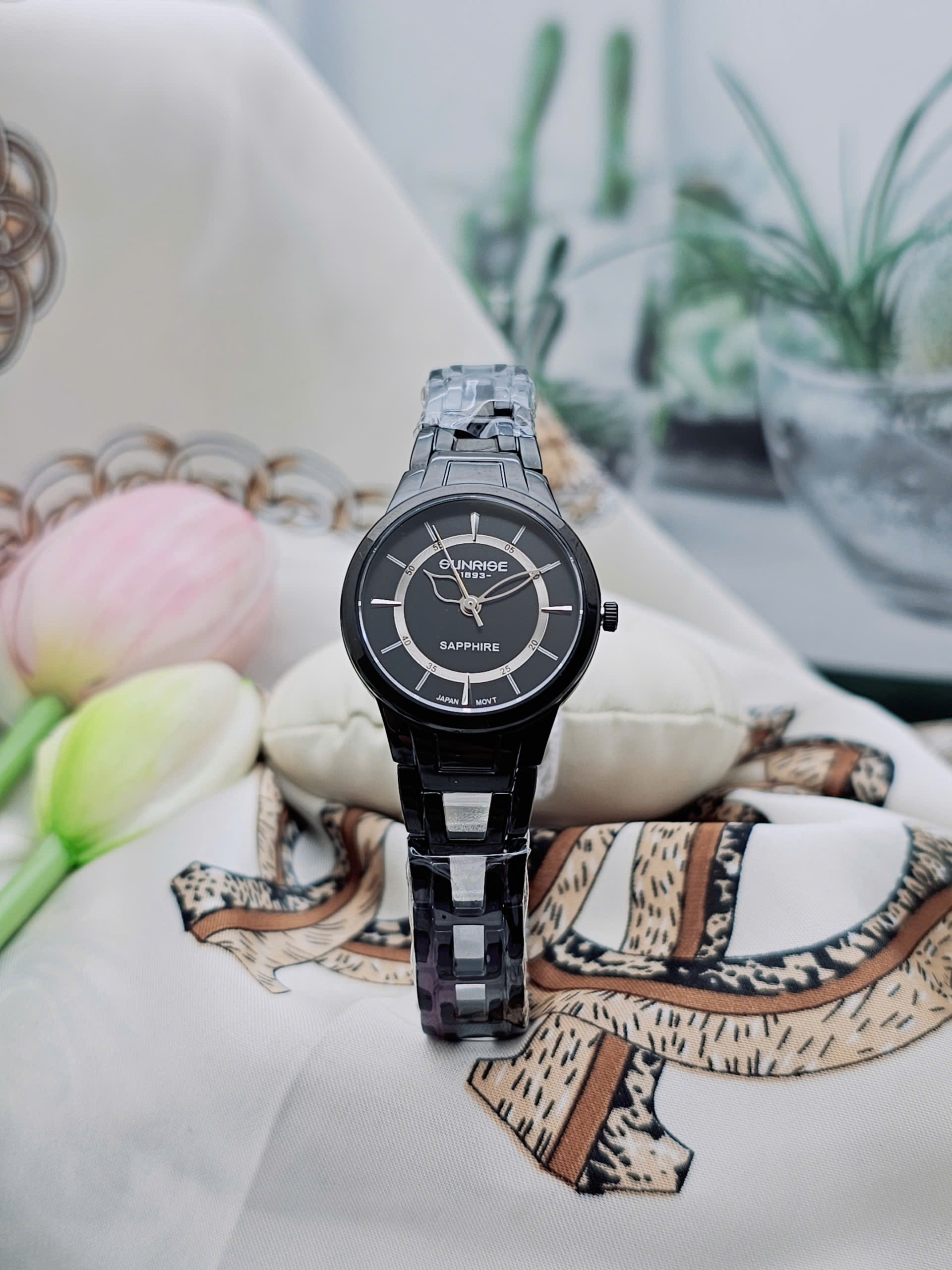 Đồng hồ nữ SUNRISE 9976SA-BkBk-SBk là mẫu thiết kế nổi bật đến từ thương hiệu Thụy Sỹ, gây ấn tượng với tông màu đen (Black) full black cá tính và hiện đại. Với đường kính mặt số 26mm, sản phẩm mang đến vẻ đẹp cân đối, thanh lịch nhưng vẫn đủ nổi bật trên cổ tay nữ giới. Đây là lựa chọn lý tưởng cho khách hàng đang tìm kiếm đồng hồ nữ SUNRISE chính hãng phong cách mạnh mẽ, sang trọng và dễ phối đồ.