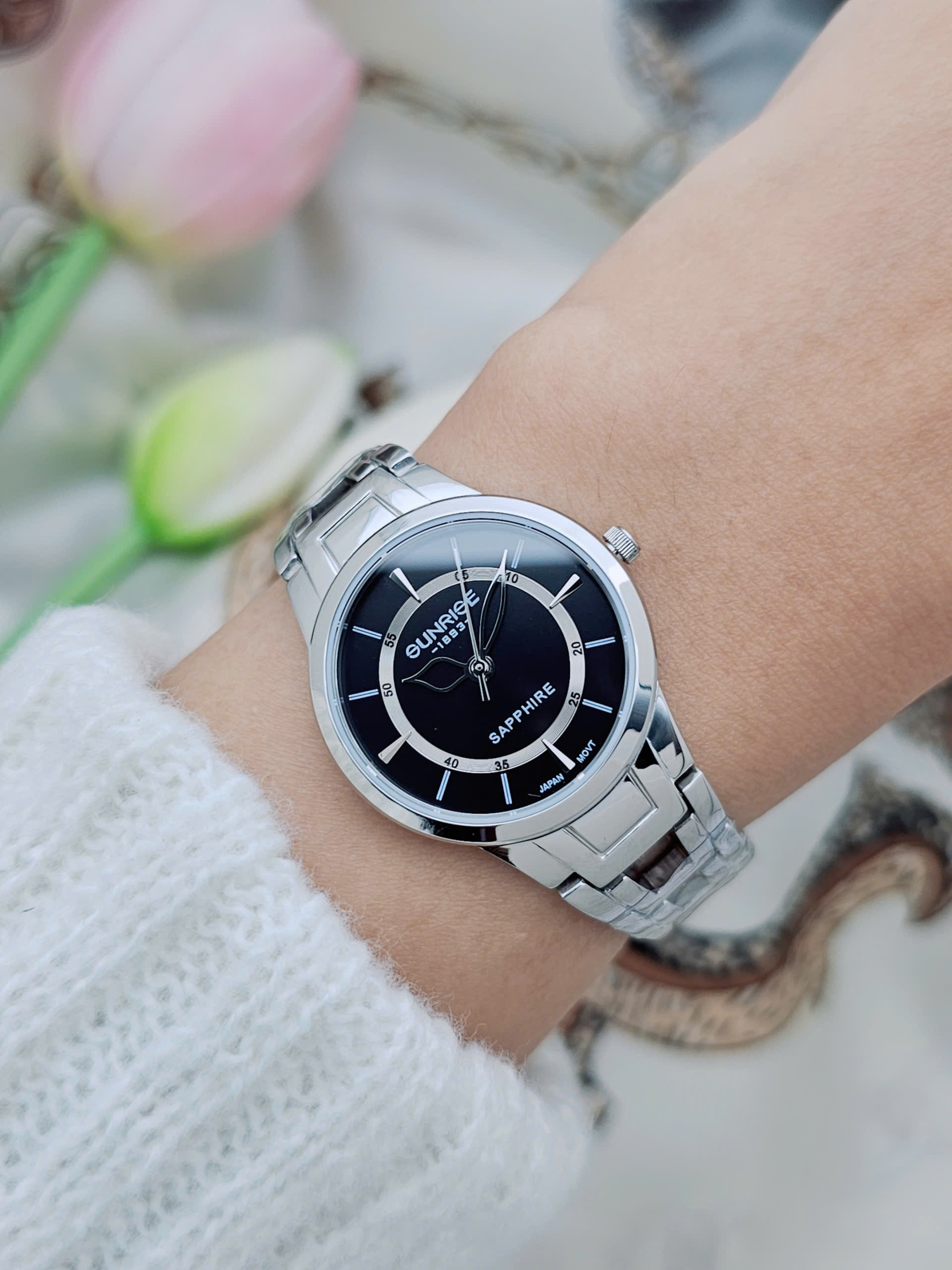 Đồng hồ nữ SUNRISE sử dụng bộ máy Pin (Quartz) cho độ chính xác cao và vận hành ổn định. Sản phẩm hiển thị đầy đủ giờ, phút, giây, không có lịch, hướng đến phong cách tối giản hiện đại. Với độ chịu nước 3 ATM, đồng hồ có thể sử dụng khi rửa tay hoặc đi mưa nhẹ. Xuất xứ Trung Quốc theo tiêu chuẩn thương hiệu Thụy Sỹ, đây là mẫu đồng hồ nữ thép không gỉ mặt kính Sapphire đáng cân nhắc trong phân khúc thời trang cao cấp.