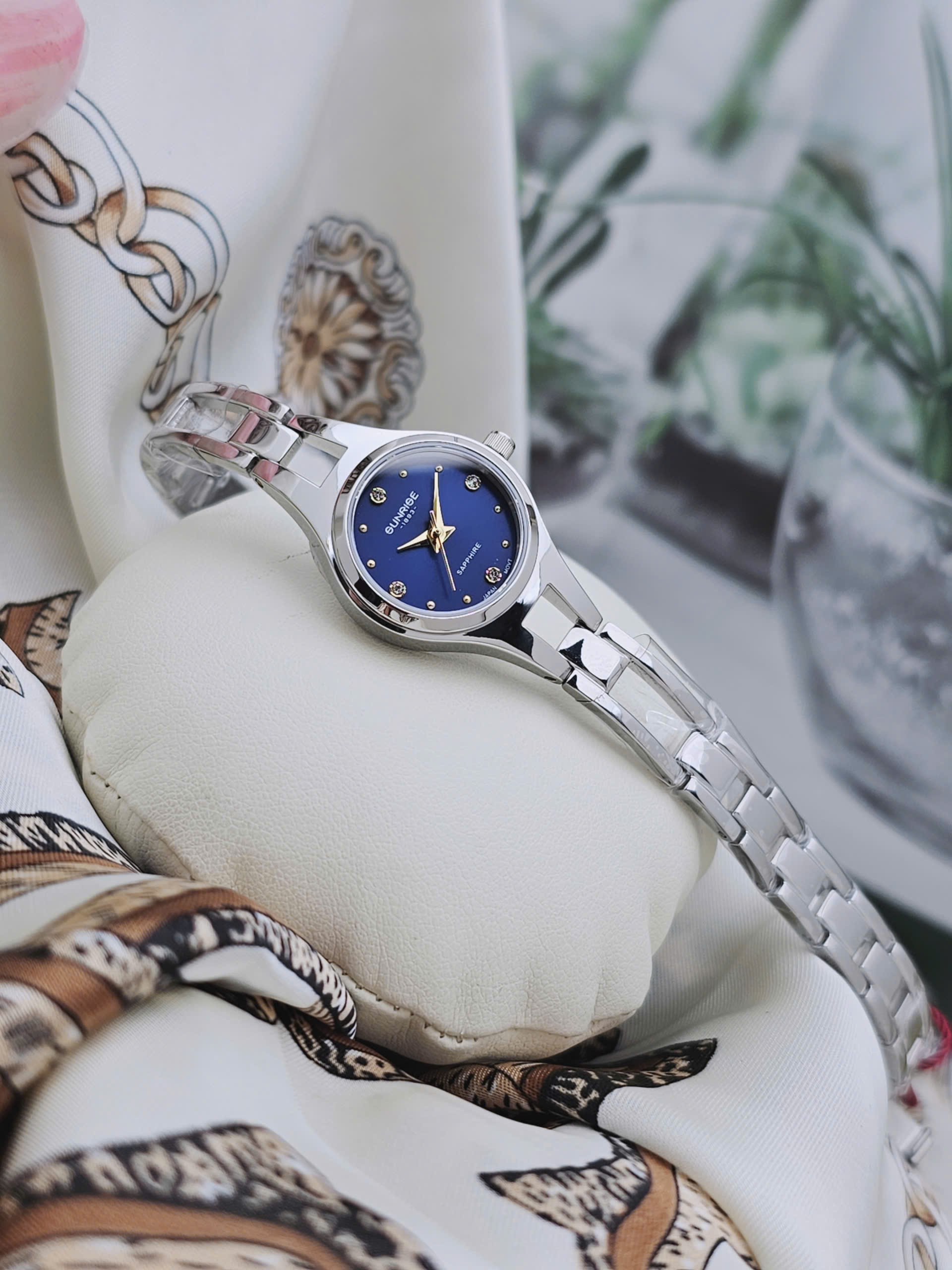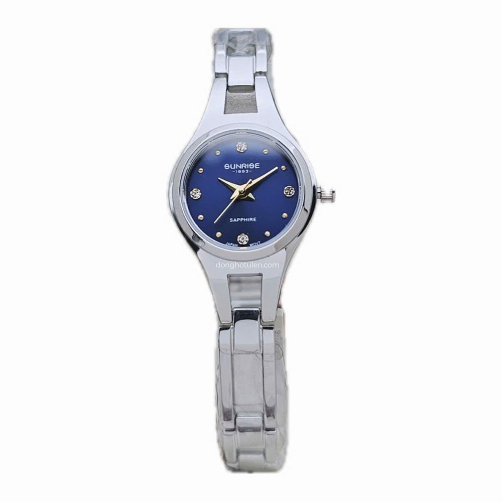 Đồng hồ nữ SUNRISE SL673SWA-SBl-SS là mẫu thiết kế tinh tế đến từ thương hiệu Thụy Sỹ, nổi bật với mặt số xanh (Blue) hiện đại kết hợp dây inox bạc (Silver) sang trọng. Với đường kính mặt số 20mm nhỏ gọn, sản phẩm ôm trọn cổ tay nữ giới, tạo nên vẻ đẹp thanh lịch và nhẹ nhàng. Đây là lựa chọn hoàn hảo cho những ai đang tìm kiếm đồng hồ nữ SUNRISE chính hãng mang phong cách thời trang trẻ trung nhưng vẫn đầy tinh tế.