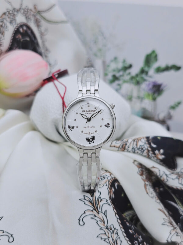 Đồng hồ nữ Sunrise dạng lắc viền bạc họa tiết bươm bướm 9012SA