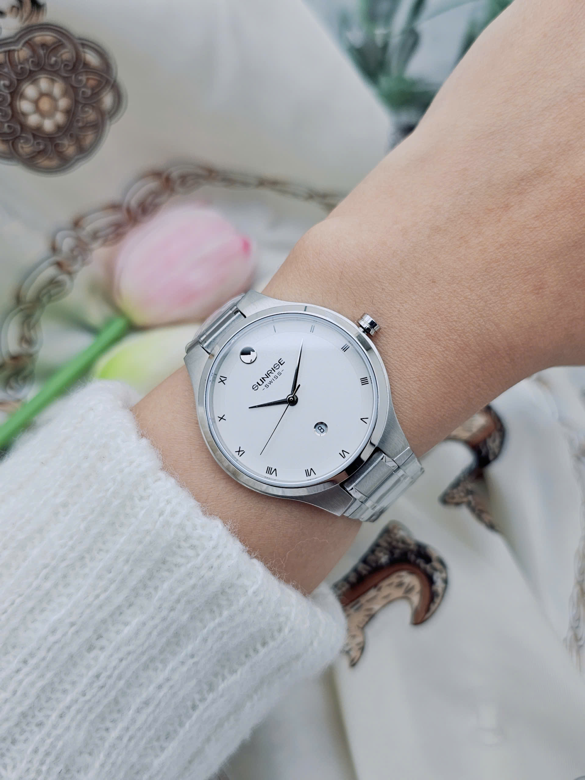 Đồng hồ nữ SUNRISE sử dụng bộ máy Pin (Quartz) cho độ chính xác cao và hoạt động ổn định. Sản phẩm hiển thị đầy đủ giờ, phút, giây, không có lịch, hướng đến phong cách tối giản hiện đại. Độ chịu nước 3 ATM giúp đồng hồ có thể sử dụng khi rửa tay hoặc đi mưa nhẹ. Xuất xứ Trung Quốc theo tiêu chuẩn thương hiệu Thụy Sỹ, đây là mẫu đồng hồ nữ thép không gỉ mặt kính Sapphire đáng sở hữu trong phân khúc thời trang cao cấp.