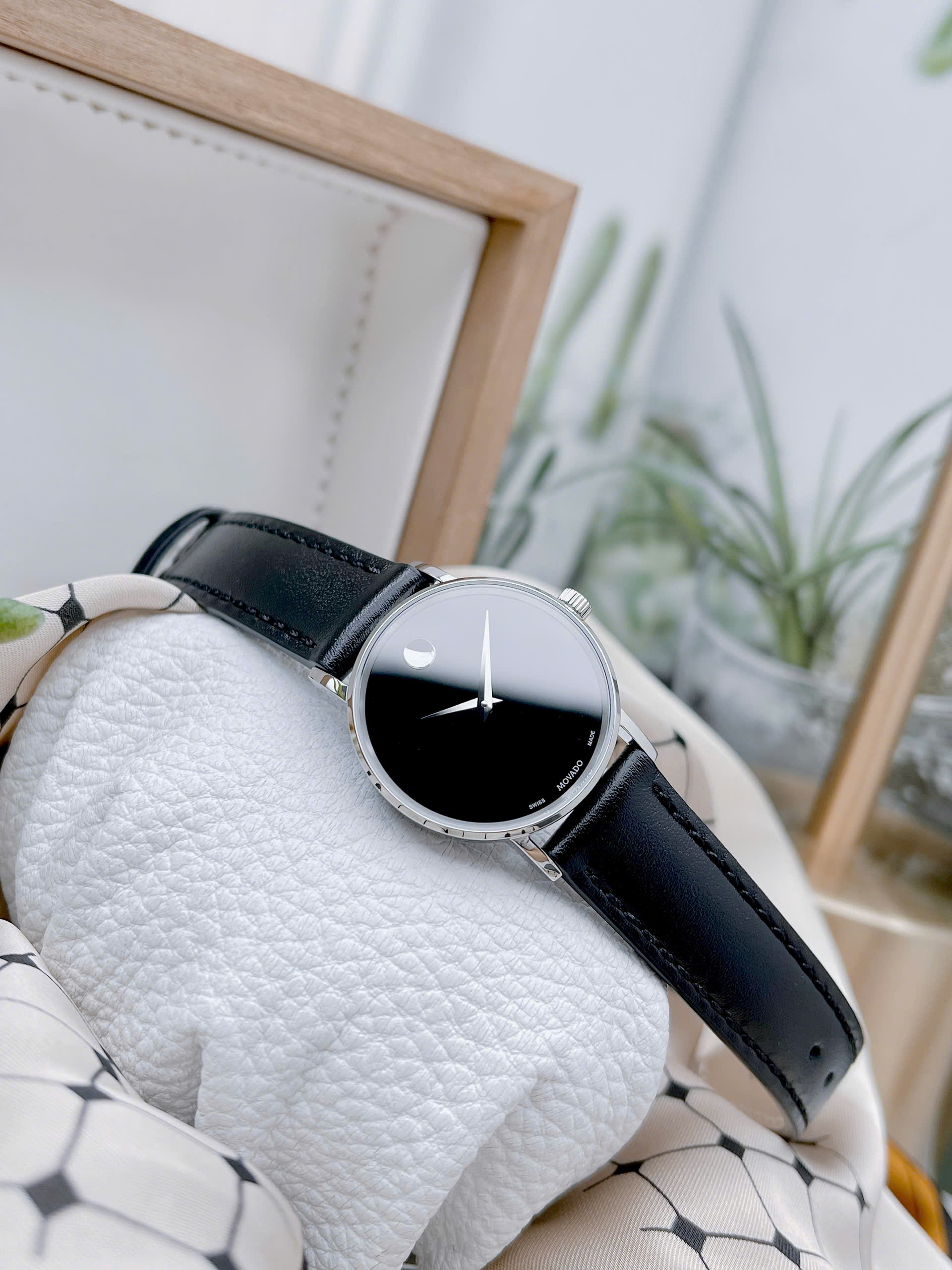 Đồng hồ nữ Movado Museum 0607317 là hiện thân của phong cách tối giản mang tính biểu tượng đến từ Thụy Sỹ. Thiết kế mặt số đen trơn với chấm tròn duy nhất tại vị trí 12 giờ đã trở thành dấu ấn kinh điển của Movado, đại diện cho sự tinh tế và nghệ thuật đương đại. Kích thước vỏ 28mm mỏng nhẹ giúp đồng hồ ôm trọn cổ tay nữ giới, tạo cảm giác thanh lịch và nhẹ nhàng. Mẫu đồng hồ này đặc biệt phù hợp với những quý cô yêu thích vẻ đẹp đơn giản nhưng vẫn toát lên đẳng cấp.