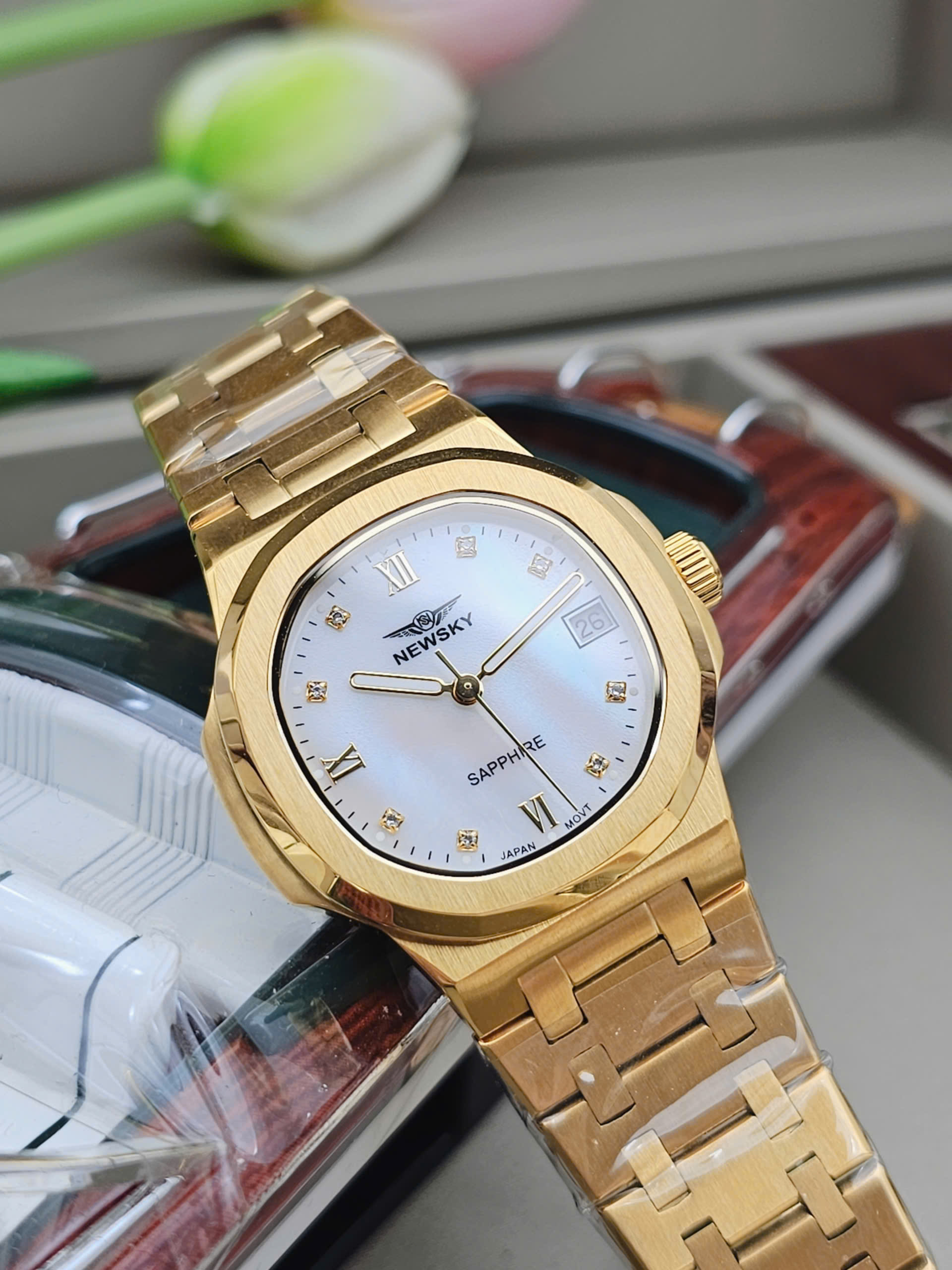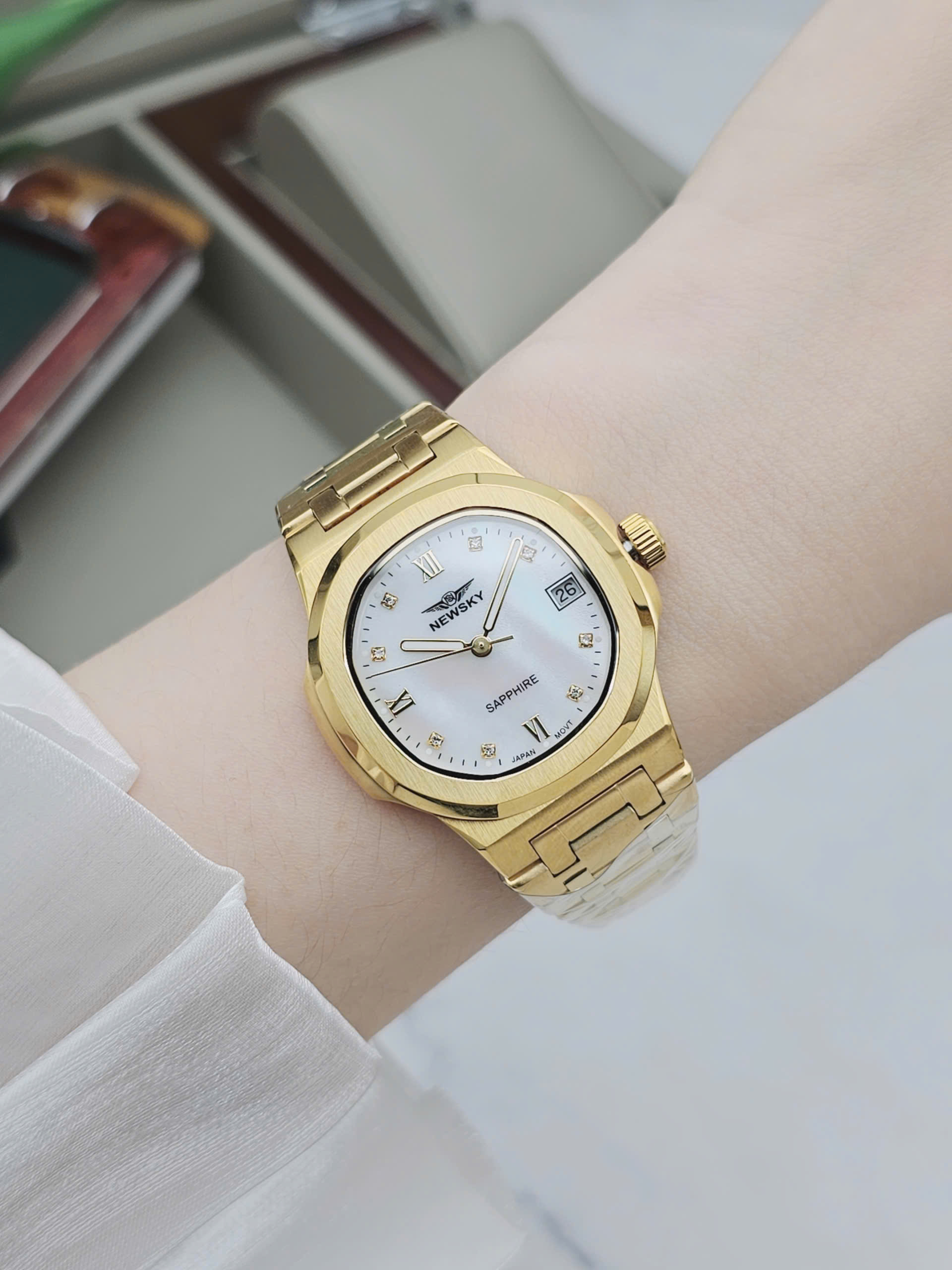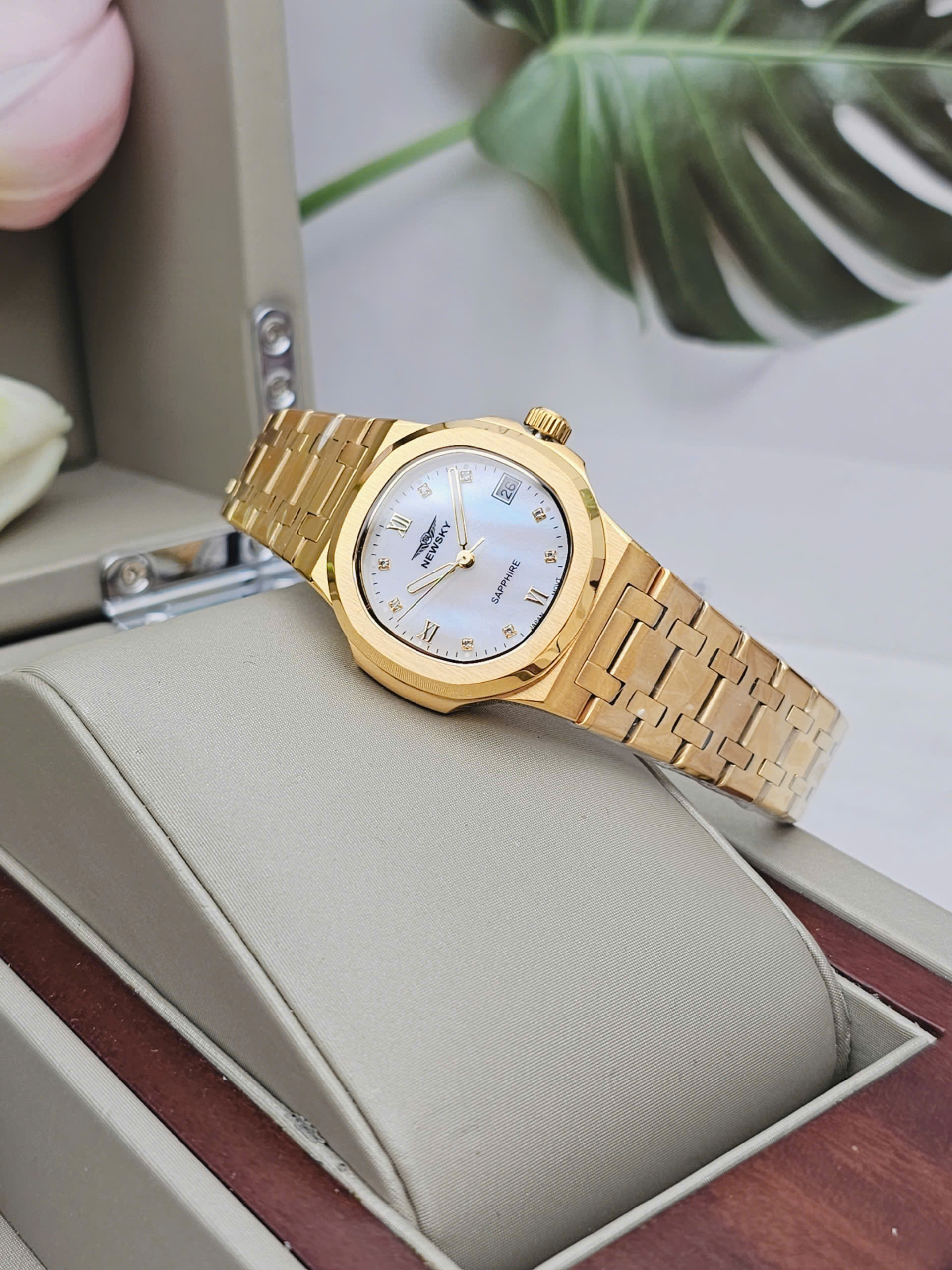 Đồng hồ nữ NEWSKY NS5025L-S05 là sự kết hợp hài hòa giữa phong cách thanh lịch và công nghệ chế tác hiện đại đến từ Nhật Bản. Sản phẩm sử dụng bộ máy Quartz Japan Movt nổi tiếng về độ chính xác và bền bỉ, mang lại sự an tâm tuyệt đối trong quá trình sử dụng hằng ngày. Thiết kế mặt số gọn gàng với kích thước vỏ 34mm giúp tôn lên vẻ nữ tính, phù hợp với cổ tay phụ nữ châu Á. Đây là mẫu đồng hồ lý tưởng cho những ai yêu thích sự tinh tế, tối giản nhưng vẫn sang trọng.