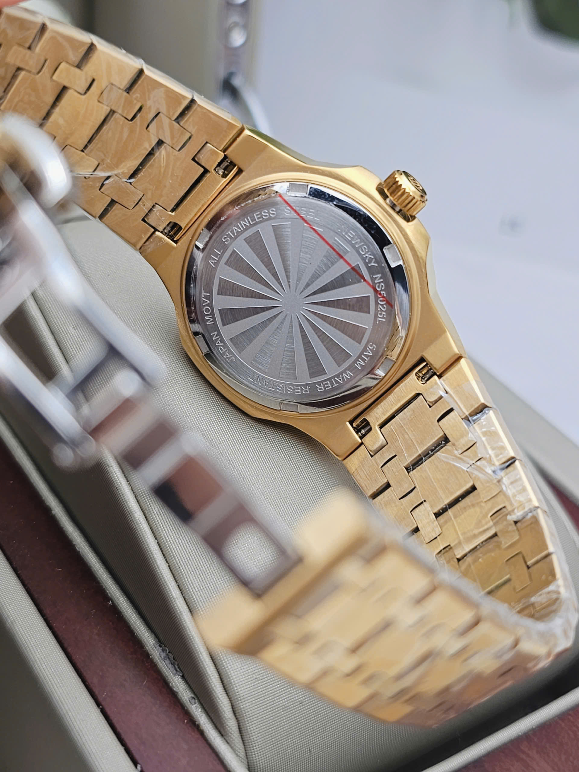 NEWSKY NS5025L-S05 sở hữu phần vỏ và dây đeo được chế tác từ thép không gỉ cao cấp, ứng dụng công nghệ mạ PVD giúp bề mặt luôn sáng đẹp, hạn chế trầy xước và phai màu theo thời gian. Dây kim loại chắc chắn nhưng vẫn tạo cảm giác thoải mái khi đeo, phù hợp cho cả môi trường công sở lẫn các buổi gặp gỡ, dạo phố. Kính sapphire chống xước hiệu quả giúp bảo vệ mặt đồng hồ tối ưu, giữ cho sản phẩm luôn như mới sau thời gian dài sử dụng.