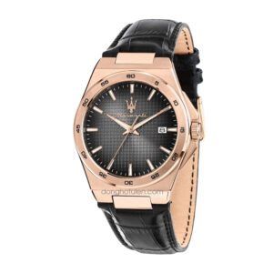 Đồng hồ nam Starke Máy Pin SK163PL.GWB Viền Vàng hồng Mặt Trắng Dây da Đen