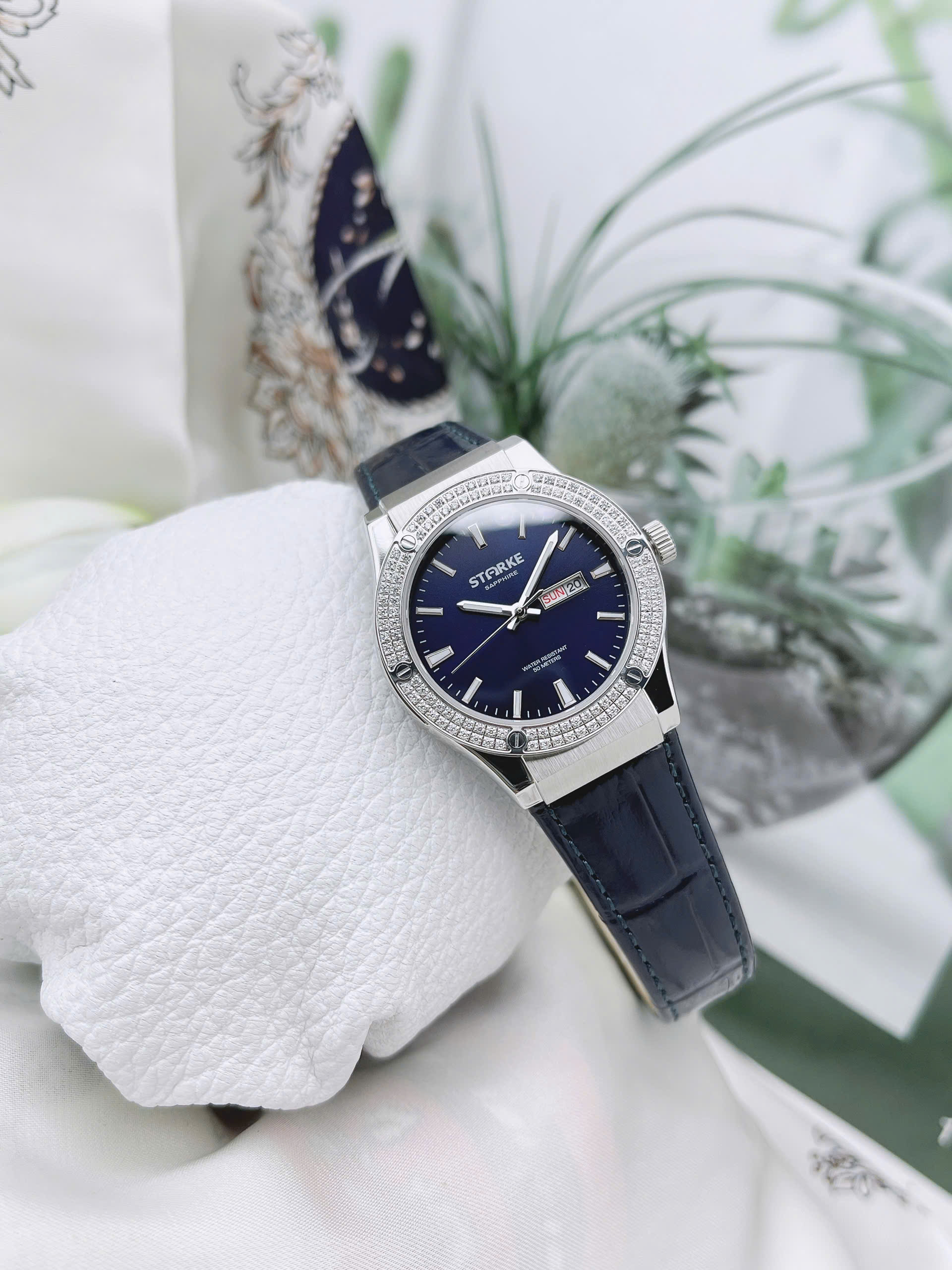 Sở hữu đường kính mặt số 33mm, STARKE SK181AL-SBl-LBl mang lại cảm giác gọn gàng, vừa vặn với cổ tay nữ giới. Mặt kính sapphire cao cấp giúp chống trầy xước hiệu quả, bảo vệ đồng hồ luôn sáng đẹp theo thời gian. Bộ máy quartz vận hành chính xác, ổn định với các chức năng cơ bản như giờ, phút, giây, đáp ứng tốt nhu cầu sử dụng hằng ngày. Khả năng chịu nước 3 ATM giúp người đeo yên tâm trong sinh hoạt thường ngày.