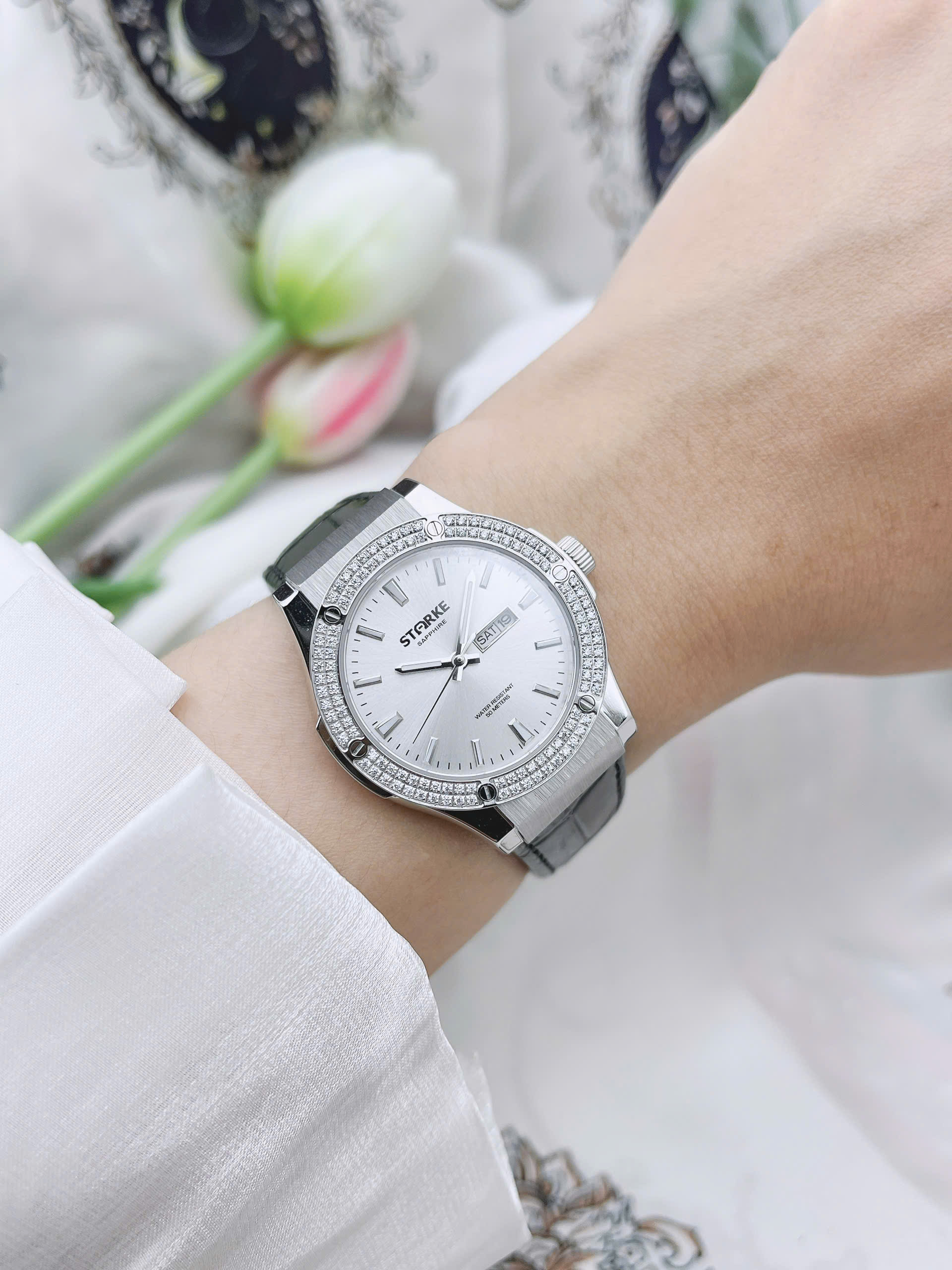 Sở hữu kích thước mặt số 33mm, STARKE SK181AL-SW-LBk vừa vặn với cổ tay nữ giới, tạo cảm giác thanh thoát khi đeo. Mặt kính sapphire cao cấp giúp chống trầy xước hiệu quả, bảo vệ đồng hồ luôn sáng đẹp theo thời gian. Bộ máy quartz vận hành chính xác, ổn định, kết hợp cùng chức năng lịch ngày và thứ mang lại sự tiện lợi trong sinh hoạt hằng ngày. Khả năng chịu nước 3ATM đáp ứng tốt các nhu cầu cơ bản như rửa tay hay đi mưa nhẹ.