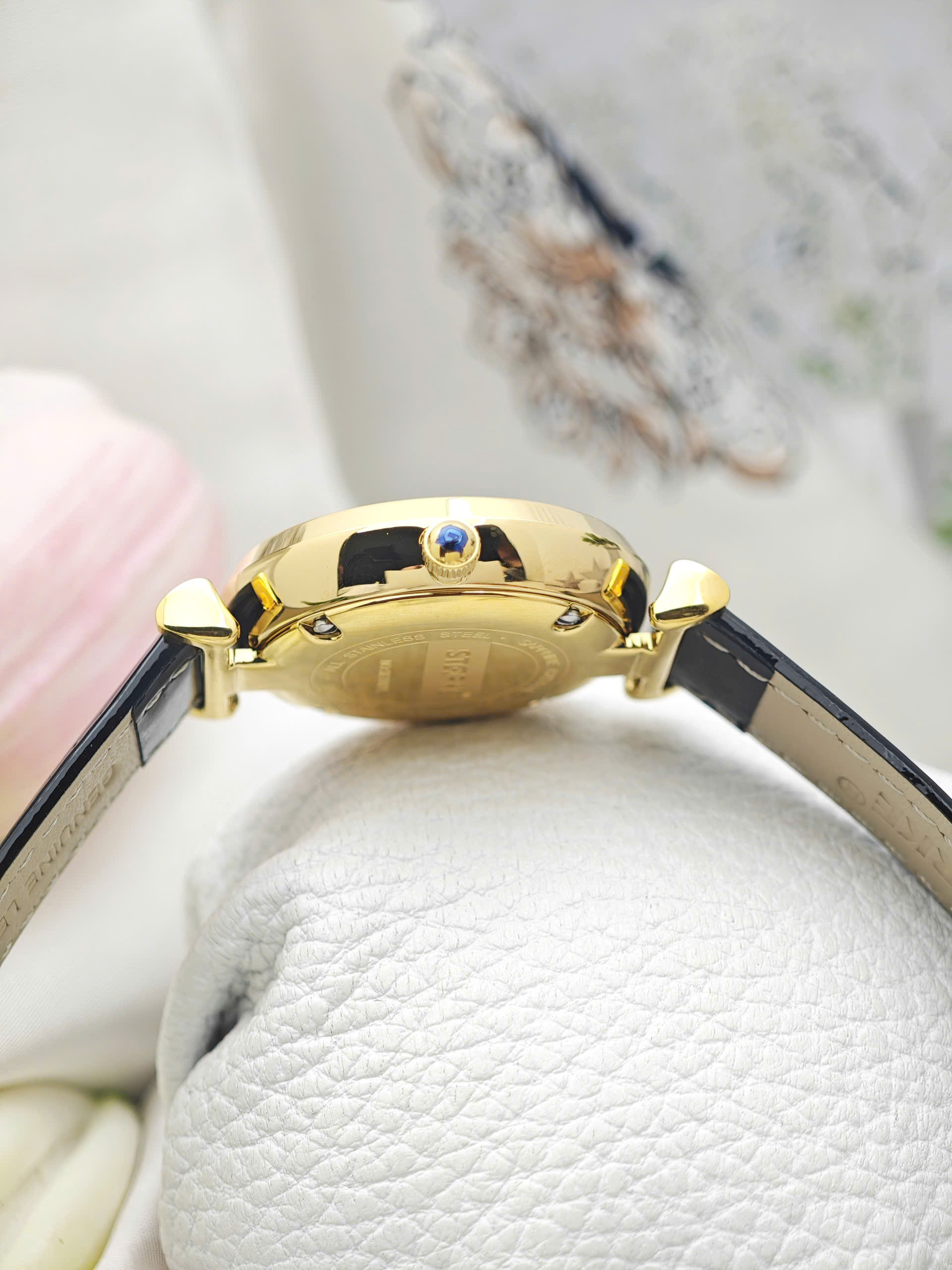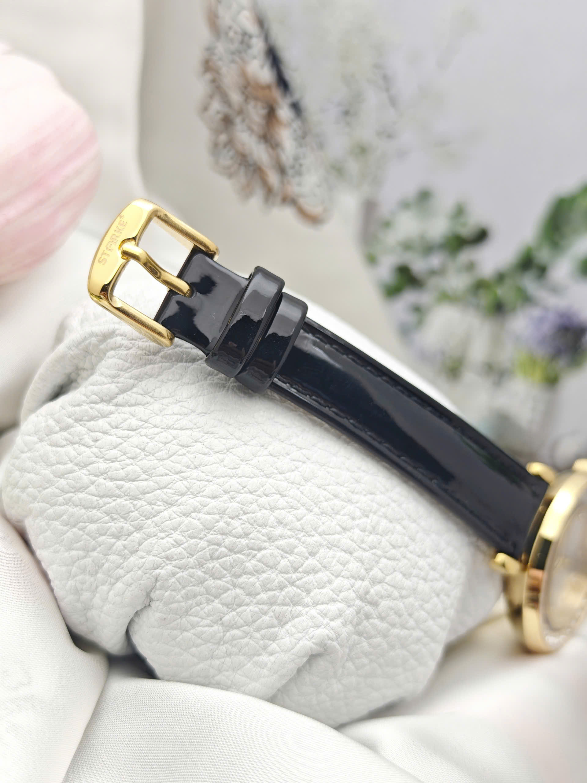 Đồng hồ nữ STARKE SK188PL.GBW là mẫu phụ kiện tinh tế dành cho phái đẹp yêu thích sự thanh lịch và hiện đại. Thiết kế mặt tròn kích thước 30mm nhỏ gọn, phù hợp với cổ tay nữ giới, kết hợp viền màu vàng sang trọng tạo nên điểm nhấn nhẹ nhàng nhưng đầy cuốn hút. Phong cách tối giản giúp chiếc đồng hồ dễ dàng phối hợp với nhiều trang phục, từ công sở hằng ngày đến những dịp trang trọng.