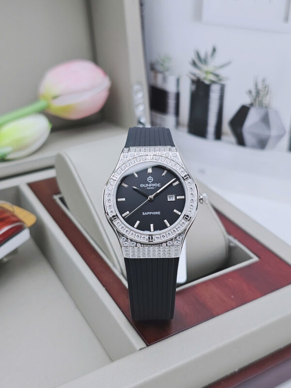 Sunrise 2310CA-VT-D sử dụng bộ máy quartz hoạt động ổn định, đáp ứng tốt nhu cầu sử dụng hằng ngày với các chức năng cơ bản như giờ, phút, giây và lịch ngày tiện lợi. Mặt kính sapphire cao cấp có khả năng chống trầy xước vượt trội, giúp bảo vệ mặt số luôn sáng rõ theo thời gian. Khả năng chịu nước 3 ATM cho phép người dùng yên tâm khi rửa tay hoặc gặp mưa nhẹ, phù hợp với nhịp sống năng động của phái nữ hiện đại.