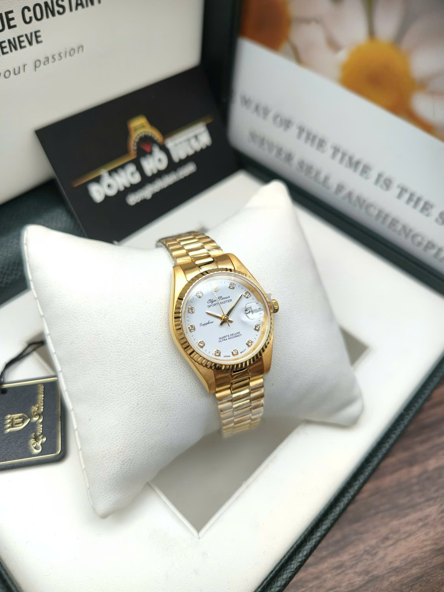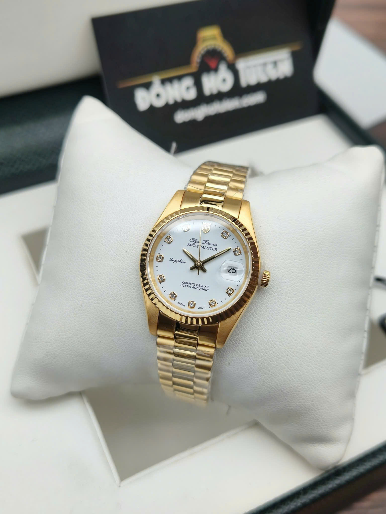 Đồng hồ OLYM PIANUS OP68322L29K-T là mẫu đồng hồ nữ mang vẻ đẹp thanh lịch và tinh tế, đến từ thương hiệu OLYM PIANUS danh tiếng của Thụy Sỹ. Thiết kế nổi bật với viền và dây đeo màu vàng sang trọng, kết hợp cùng mặt số trắng trang nhã, tạo nên tổng thể hài hòa và đầy cuốn hút. Vỏ và dây được chế tác từ thép không gỉ cao cấp, giúp đồng hồ không chỉ bền bỉ mà còn tôn lên phong cách quý phái cho phái đẹp.