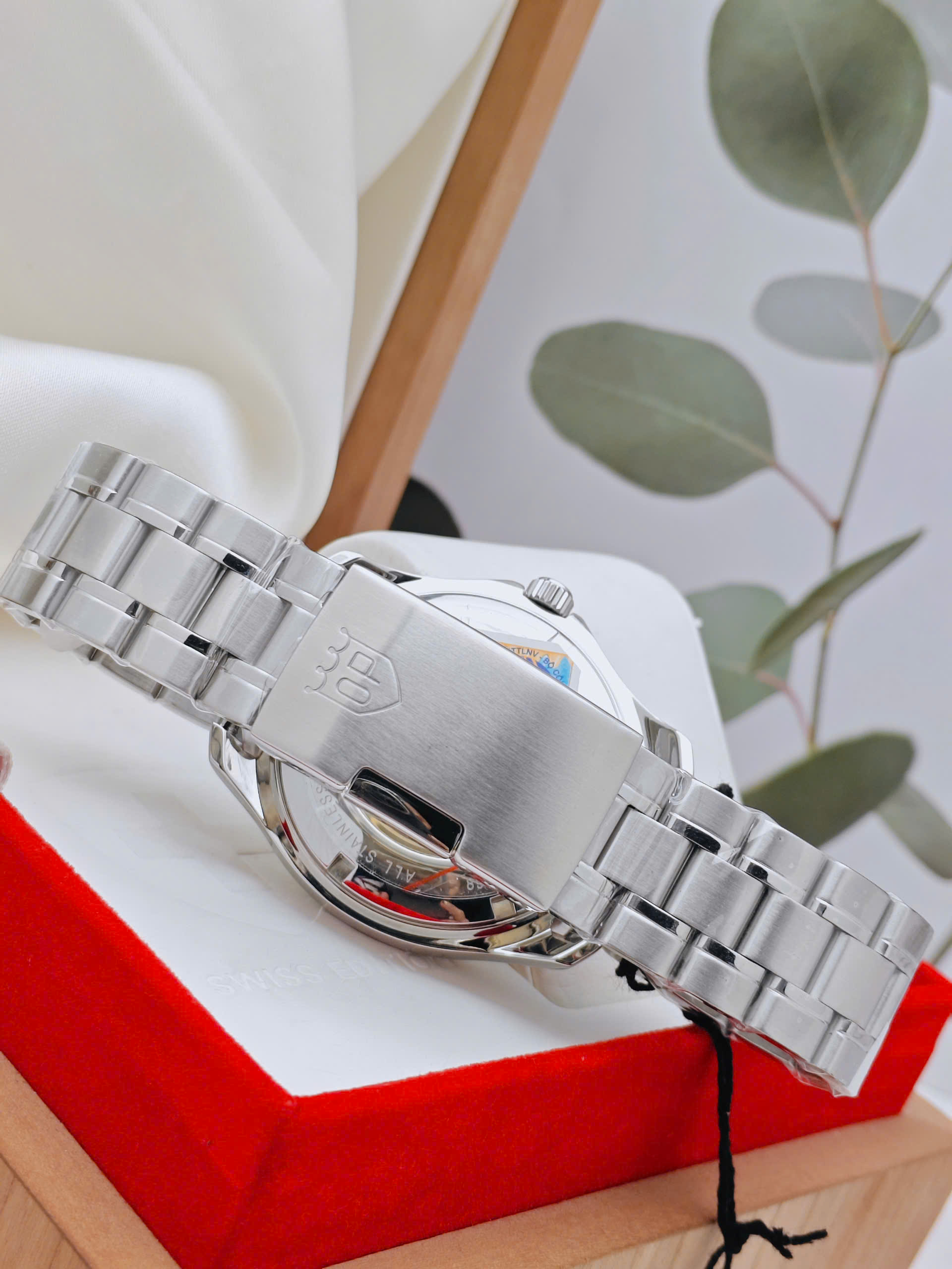 OP8973AMS-T được trang bị bộ máy Automatic (cơ) chất lượng cao, vận hành dựa trên chuyển động cổ tay, mang lại trải nghiệm thú vị cho người đeo. Mặt kính sapphire cao cấp có khả năng chống trầy xước tốt, giúp bảo vệ mặt số và giữ vẻ đẹp lâu dài theo thời gian. Vỏ và dây đều được làm từ thép không gỉ 316L, không chỉ chắc chắn mà còn có khả năng chống ăn mòn, phù hợp với điều kiện sử dụng thường xuyên.