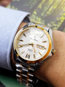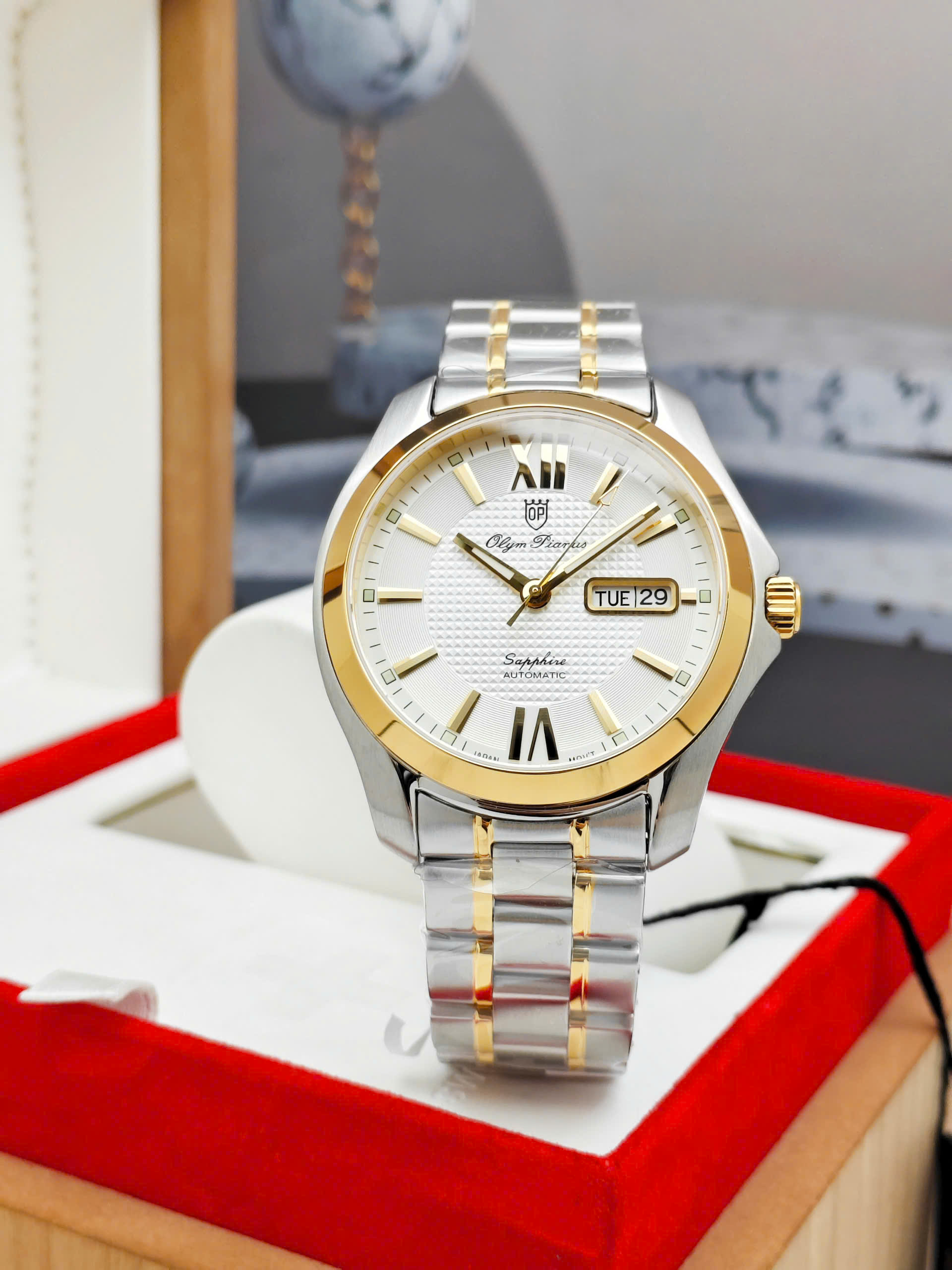 Đồng hồ nam Olym Pianus OP8973AMSK-T là mẫu đồng hồ cơ nổi bật với phong cách sang trọng và nam tính, phù hợp với những quý ông yêu thích vẻ đẹp lịch lãm. Thiết kế mặt số cân đối kết hợp cùng tông vàng PVD cao cấp giúp sản phẩm toát lên sự đẳng cấp và cuốn hút ngay từ cái nhìn đầu tiên. Với đường kính 40mm, đồng hồ mang lại cảm giác chắc tay, phù hợp với nhiều kích thước cổ tay nam giới, đặc biệt lý tưởng khi đeo trong môi trường công sở hoặc các sự kiện trang trọng.