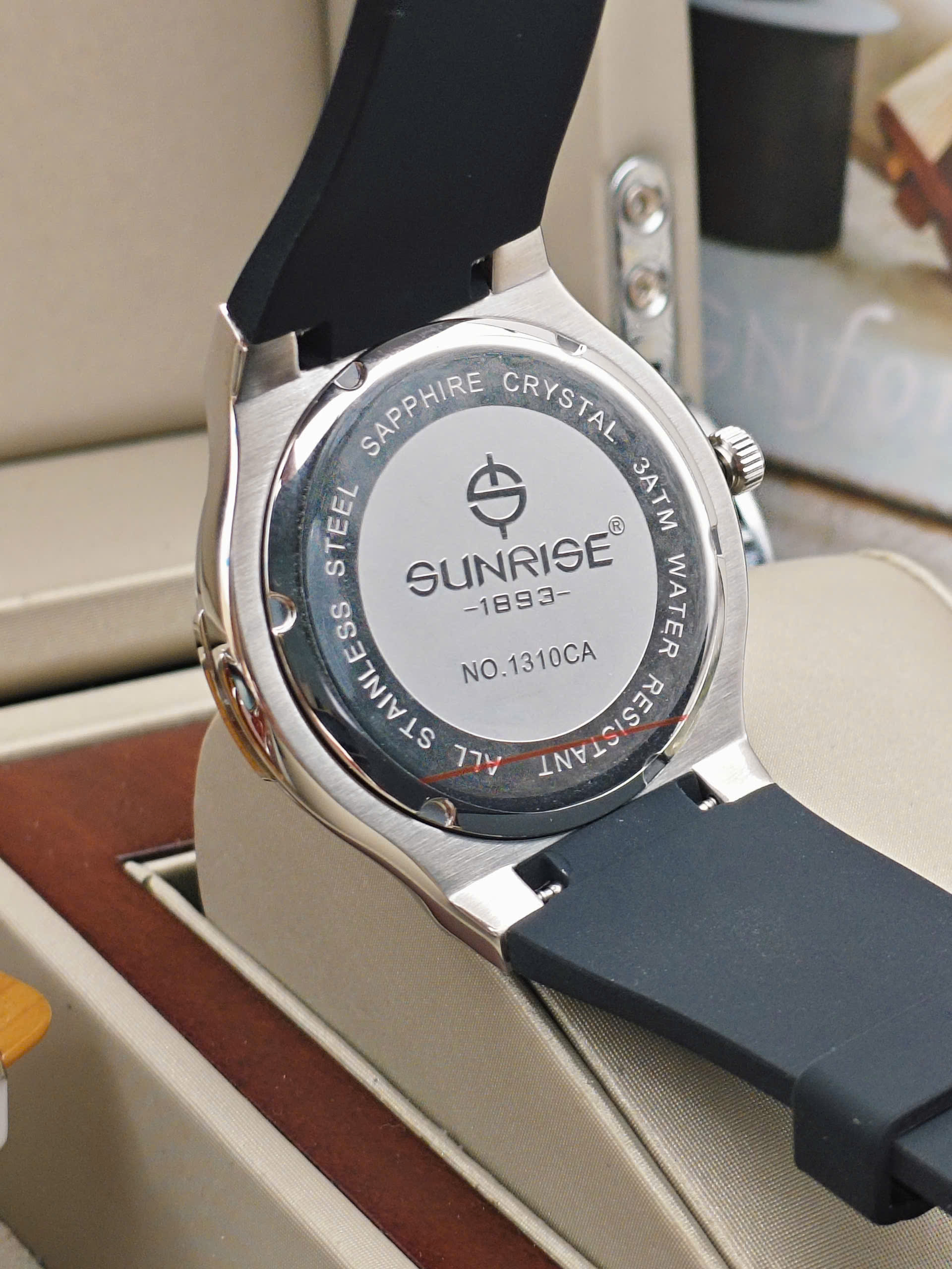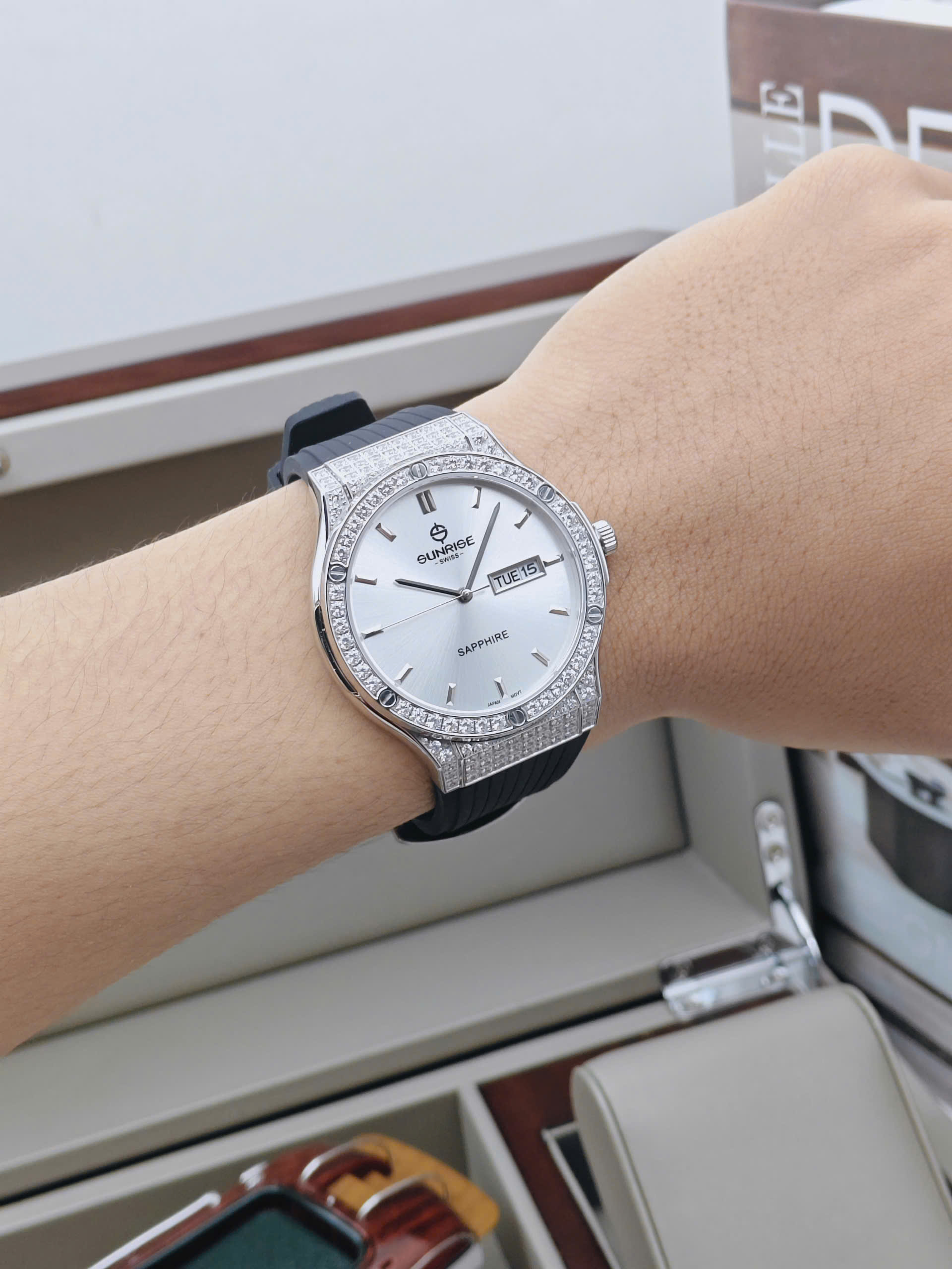 Sunrise 1310CA-VT-T sử dụng bộ máy quartz Nhật Bản, đảm bảo độ chính xác cao và hoạt động ổn định theo thời gian. Đồng hồ được trang bị đầy đủ các chức năng cơ bản như giờ, phút, giây cùng lịch ngày và thứ tiện lợi, phục vụ tối đa nhu cầu sử dụng hằng ngày. Mặt kính sapphire cao cấp giúp chống trầy xước hiệu quả, giữ cho mặt số luôn rõ nét và bền đẹp. Khả năng chịu nước 3 ATM cho phép người dùng yên tâm khi rửa tay hoặc gặp mưa nhẹ.