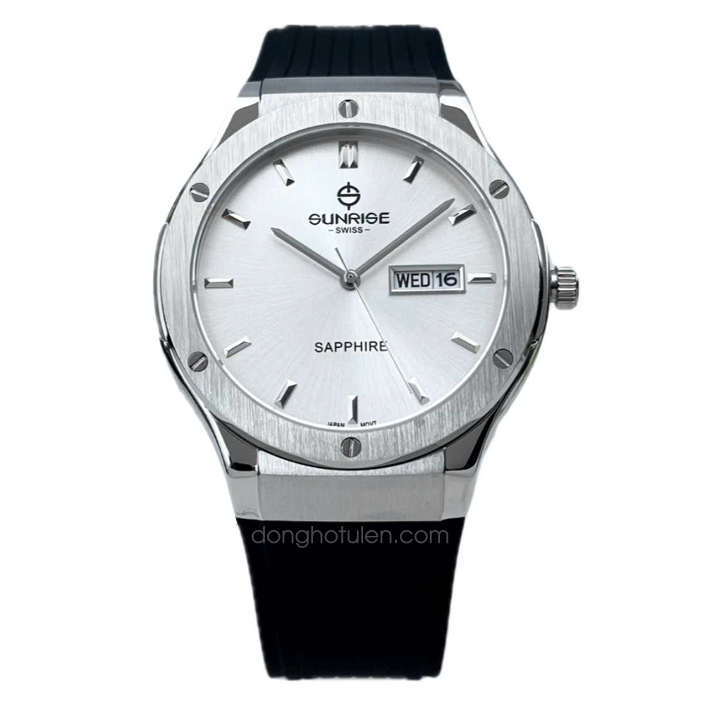 Đồng hồ Sunrise 1310JA-VT-T là mẫu đồng hồ nam mang phong cách hiện đại, được thiết kế dành cho những quý ông yêu thích sự tinh tế và thực dụng. Thương hiệu Sunrise đến từ Thụy Sĩ nổi tiếng với độ bền và độ chính xác cao, mang đến sự yên tâm trong quá trình sử dụng. Vỏ đồng hồ làm từ thép không gỉ màu bạc sang trọng, kết hợp cùng mặt kính sapphire chống trầy xước hiệu quả, giúp bảo vệ mặt số luôn sáng đẹp theo thời gian. Đường kính mặt 41mm vừa vặn, phù hợp với cổ tay nam giới Á Đông.