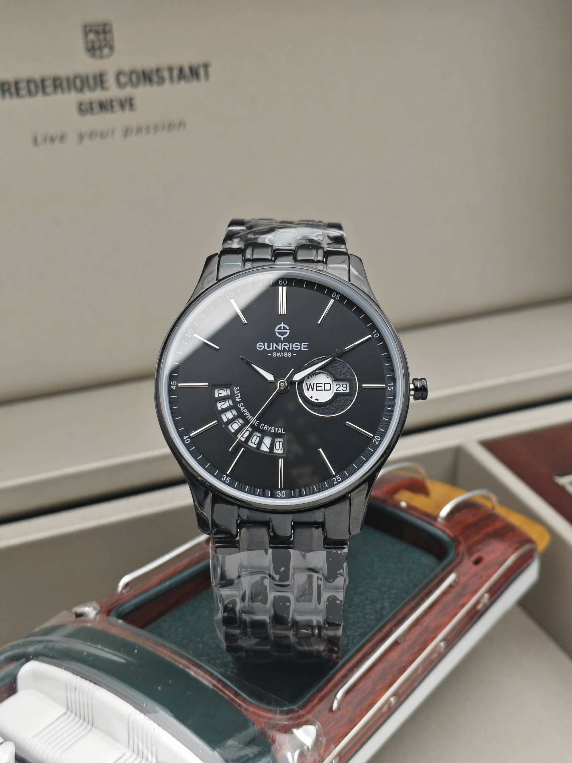 Sunrise 1127SA-Black được trang bị vỏ và dây đeo bằng thép không gỉ phủ đen, mang lại cảm giác chắc chắn, bền bỉ và hiện đại. Chất liệu thép không gỉ giúp đồng hồ chống ăn mòn, hạn chế trầy xước và giữ được vẻ đẹp lâu dài. Mặt kính Sapphire Crystal cao cấp có khả năng chống xước vượt trội, bảo vệ mặt số luôn rõ nét theo thời gian. Với độ chịu nước 3ATM, đồng hồ phù hợp cho các hoạt động sinh hoạt thường ngày như rửa tay hay đi mưa nhẹ.