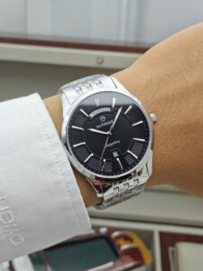 Sunrise DM770SWA-BLACK là sự kết hợp hoàn hảo giữa tinh thần thể thao năng động và phong cách sang trọng vượt thời gian. Điểm nhấn ấn tượng nhất chính là mặt số đa chức năng với các ô phụ được bố trí tinh tế, không chỉ hỗ trợ tối đa việc quản lý thời gian mà còn tạo nên một diện mạo đầy quyền lực cho phái mạnh. Với đường kính mặt 40mm tiêu chuẩn, mẫu đồng hồ này dễ dàng chinh phục mọi trang phục, từ bộ suit công sở lịch lãm cho đến những set đồ dạo phố hiện đại, giúp người sở hữu luôn tự tin khẳng định bản sắc riêng.