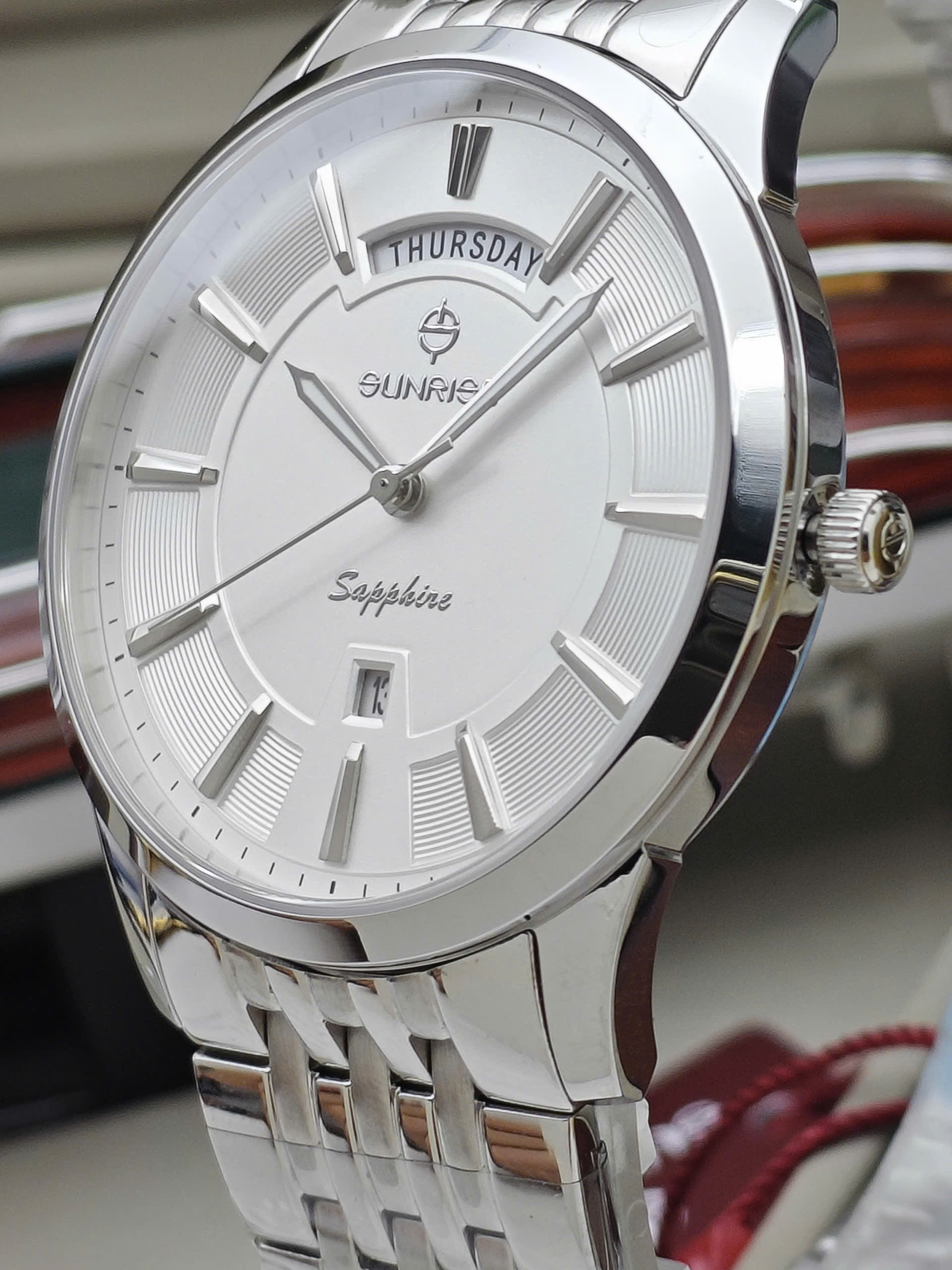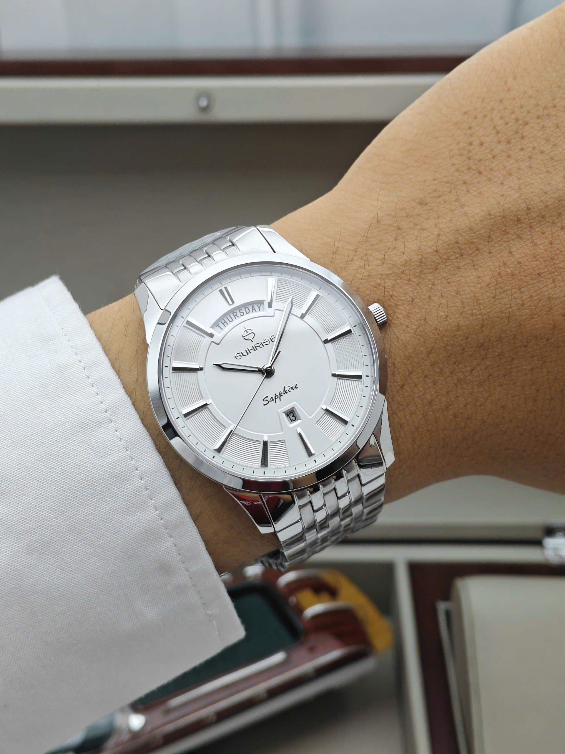 “Trái tim” của Sunrise DM770SWA-WHITE là bộ máy Quartz Japan Movt đến từ Nhật Bản, nổi tiếng với độ bền bỉ và sự chuẩn xác gần như tuyệt đối. Bên cạnh khả năng hiển thị giờ, đồng hồ còn tích hợp đầy đủ lịch ngày, lịch thứ và định dạng 24 giờ, giúp các quý ông nắm bắt nhịp sống bận rộn một cách khoa học nhất. Kết hợp cùng khả năng kháng nước tiêu chuẩn, cho phép sử dụng thoải mái khi rửa tay hay đi mưa, Sunrise DM770SWA-WHITE xứng đáng là người bạn đồng hành tin cậy, bền bỉ và đầy kiêu hãnh của những người đàn ông thành đạt.