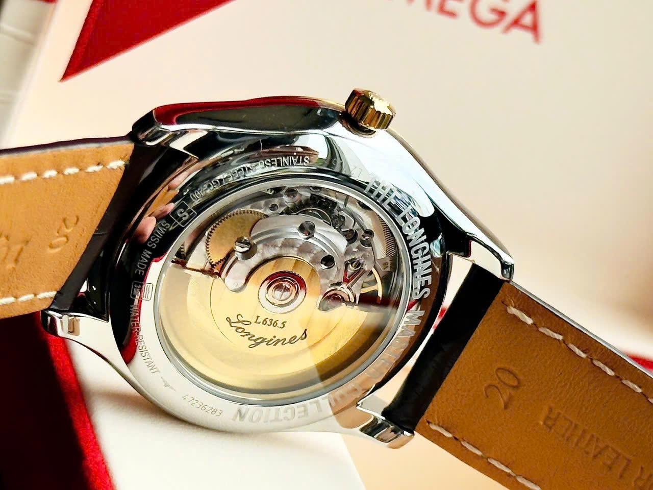 Bộ máy cơ khí Thụy Sĩ bền bỉ và chính xác Ẩn sau vẻ ngoài hào nhoáng là bộ máy cơ tự động (Automatic) Caliber L636.5 mạnh mẽ với 25 chân kính và tần số dao động lên đến 28.800 vph, đảm bảo độ ổn định và chính xác cao. Đồng hồ được trang bị đầy đủ các tính năng hữu ích như lịch ngày, lịch thứ tại vị trí 3 giờ cùng khả năng trữ cót khoảng 38 giờ. Mặt lưng trong suốt cho phép người dùng quan sát được những chuyển động nhịp nhàng và tinh vi của bộ máy bên trong, khẳng định giá trị đích thực của một sản phẩm đến từ thương hiệu Longines lâu đời.