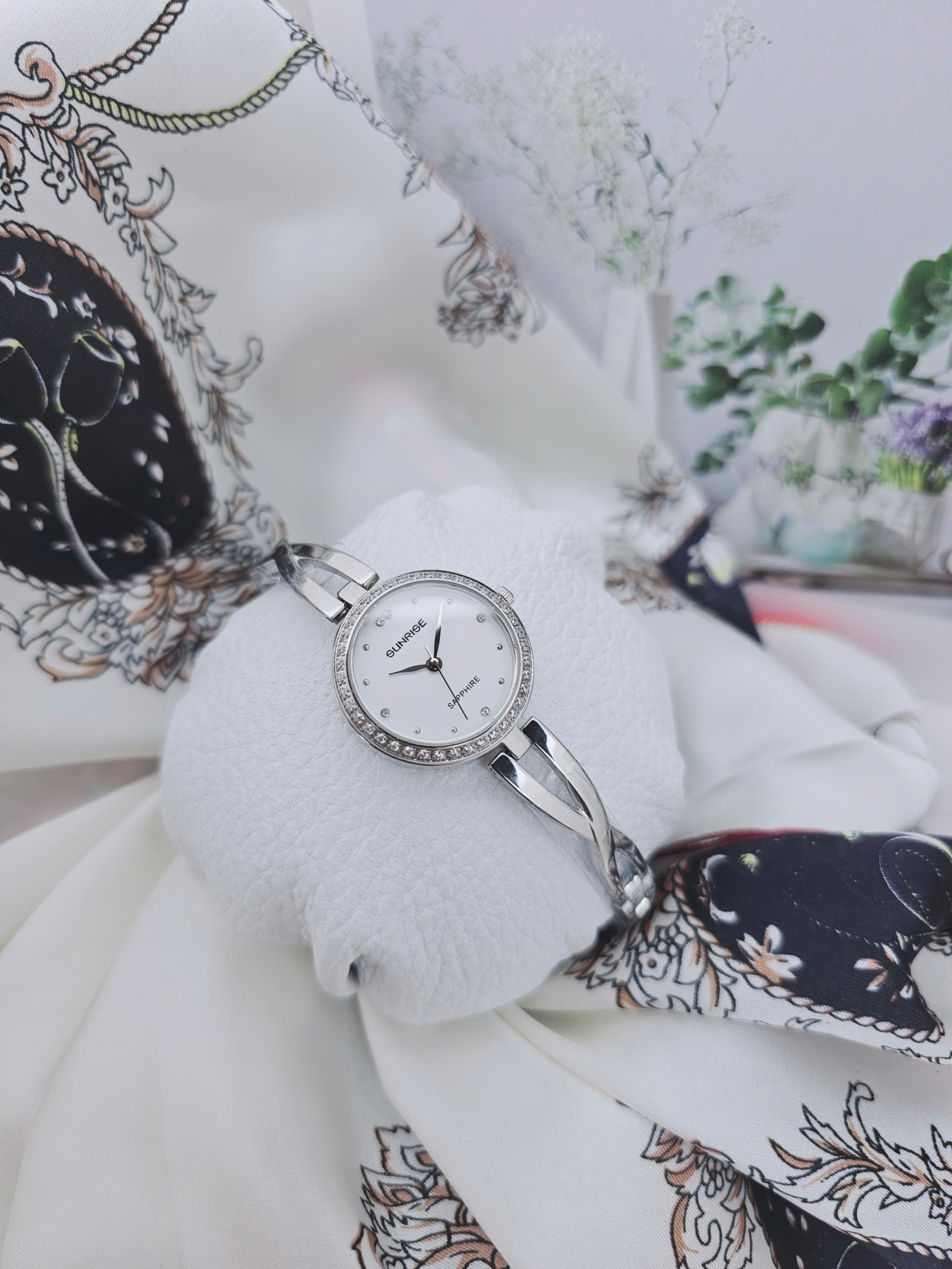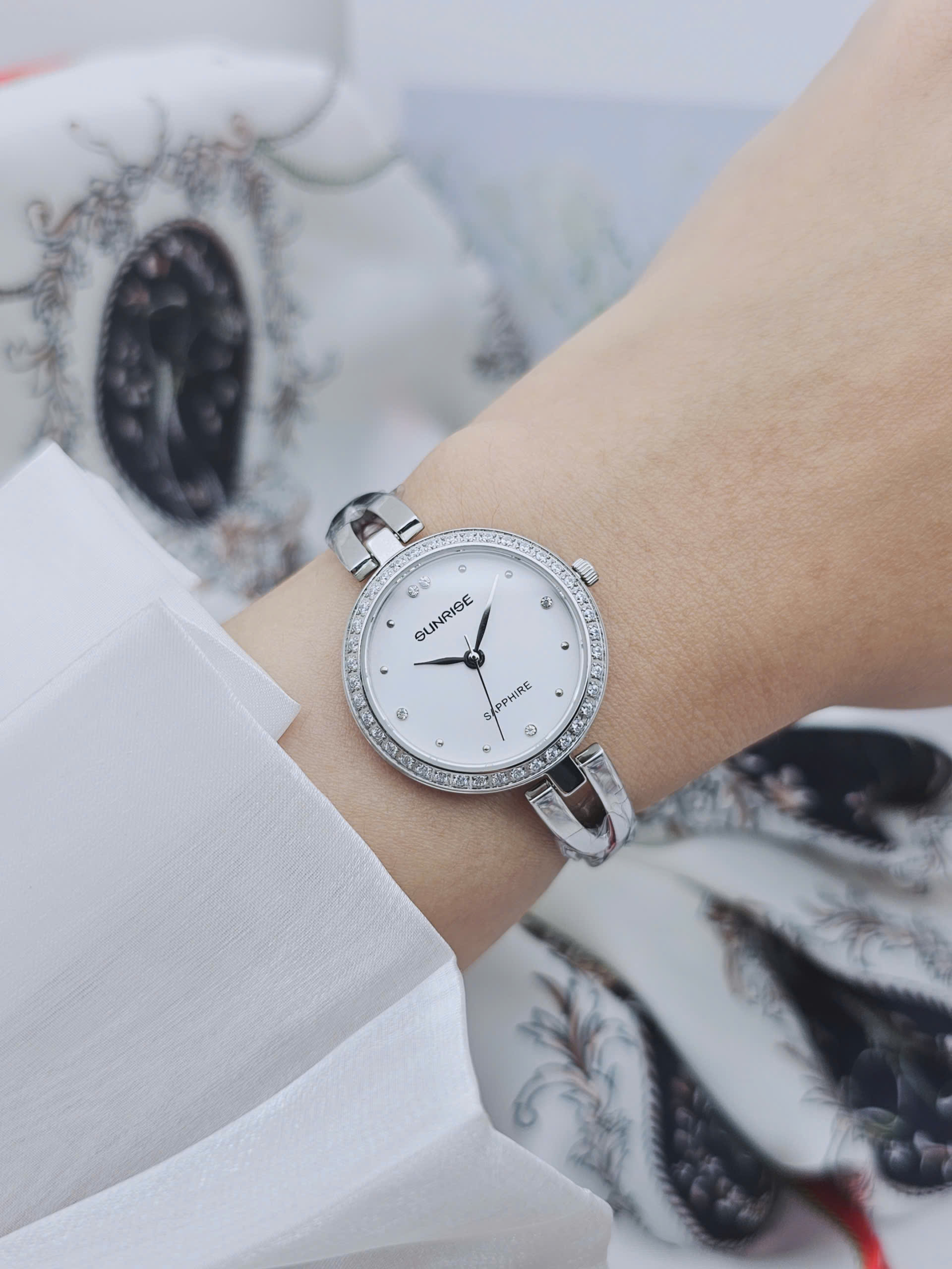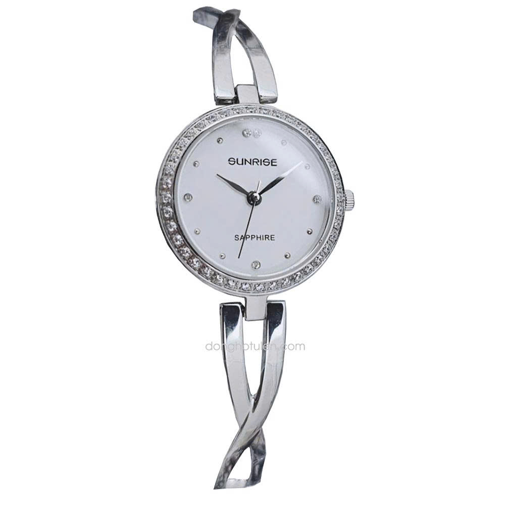 Đồng hồ nữ Sunrise dạng lắc Màu bạc Viền đá SL715SXA