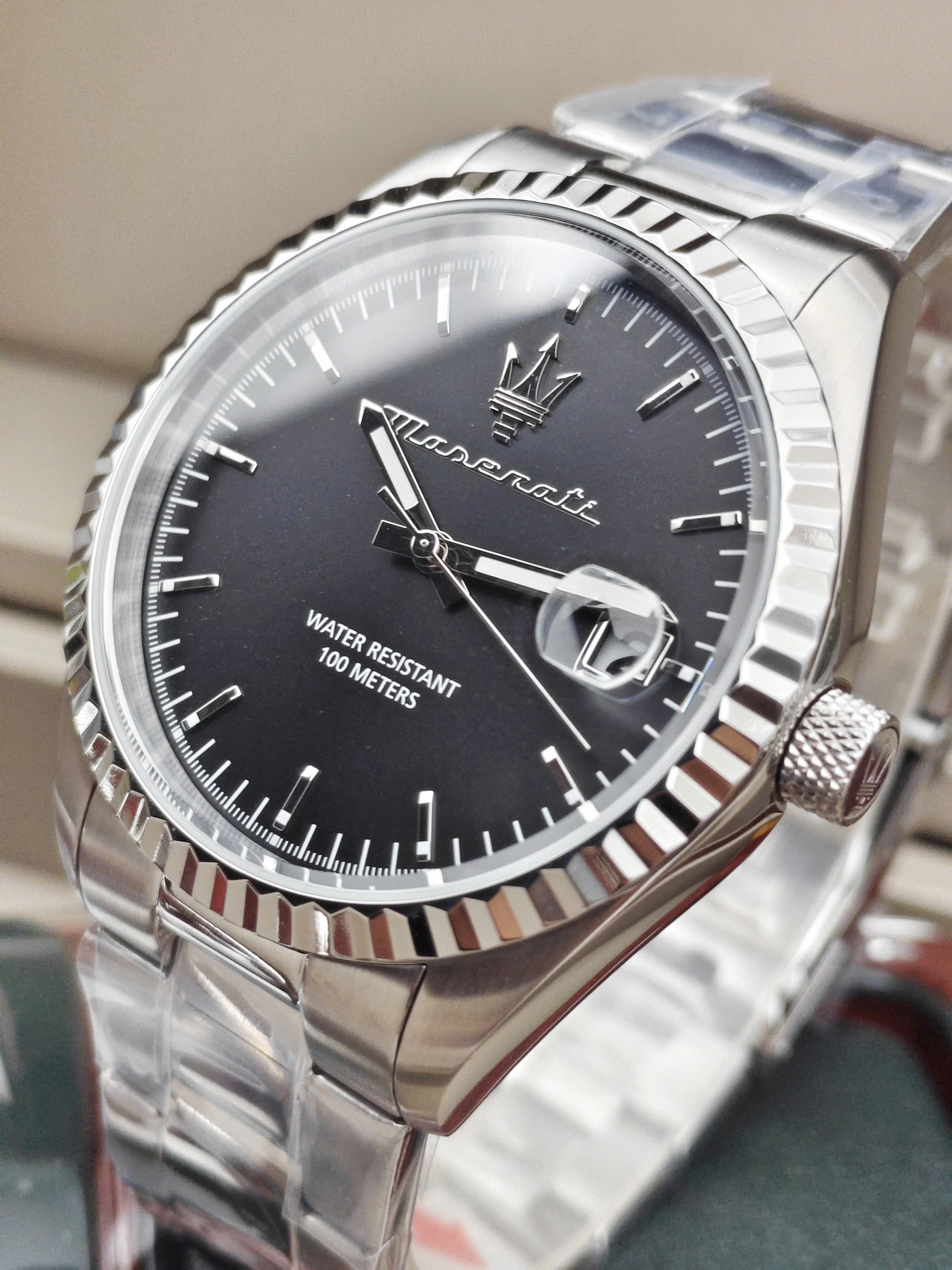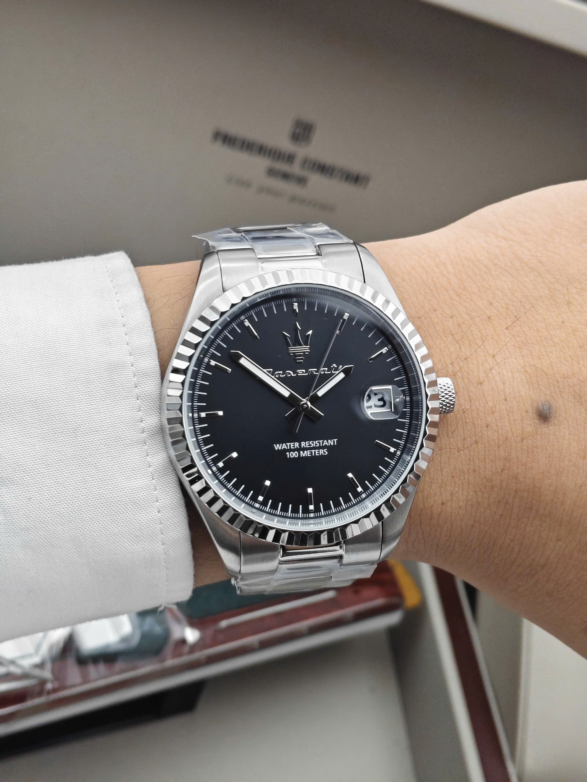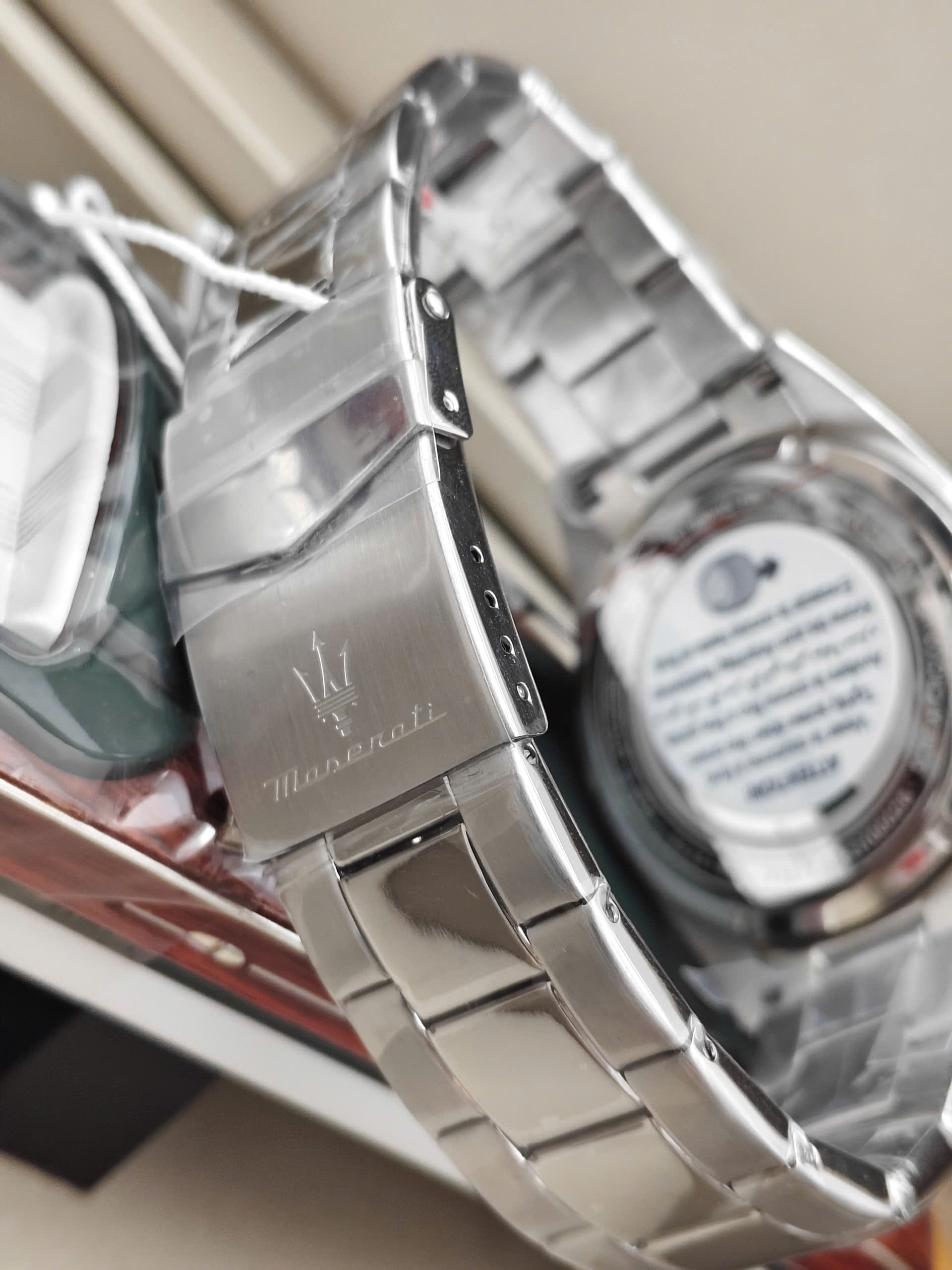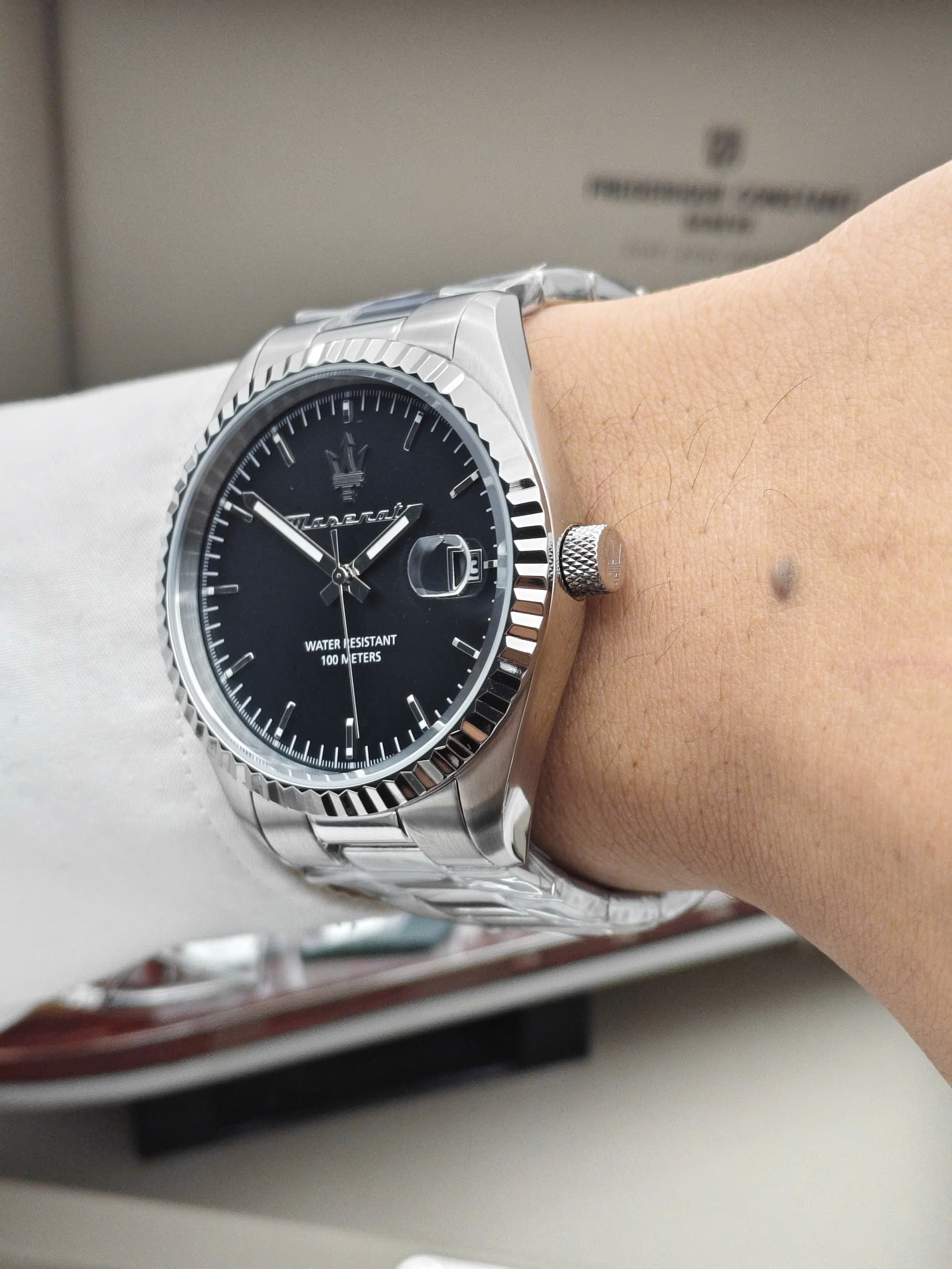 Điểm cộng đáng giá khác của mẫu đồng hồ này là khả năng chống nước lên đến 10 ATM (tương đương 100 mét). Mức chống nước này cho phép người dùng thoải mái đeo đồng hồ trong nhiều điều kiện sinh hoạt hằng ngày như rửa tay hay đi mưa, thậm chí là bơi lội nhẹ. Tổng hòa, chiếc đồng hồ Maserati này là sự lựa chọn tuyệt vời cho những ai yêu thích phong cách thể thao, đề cao chất lượng và mong muốn sở hữu một phụ kiện thể hiện niềm đam mê với di sản xe đua lừng danh, tất cả hội tụ trong một thiết kế thanh lịch và dễ dàng phối hợp với nhiều trang phục.