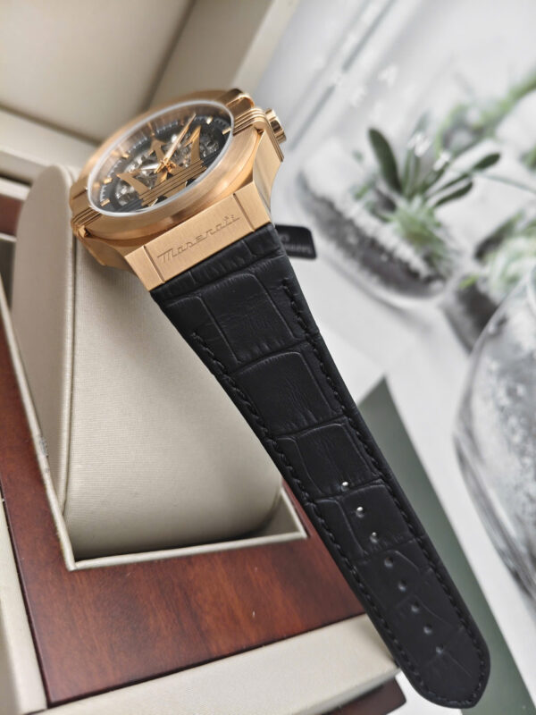 MASERATI Potenza R8821108053 là mẫu đồng hồ nam mang đậm tinh thần Ý, nơi hội tụ giữa nghệ thuật thiết kế và cảm hứng tốc độ đặc trưng của thương hiệu MASERATI. Với đường kính mặt số 42mm cùng độ dày 13.7mm, mẫu đồng hồ này toát lên vẻ mạnh mẽ, nam tính và đầy uy lực trên cổ tay. Tông màu rosegold chủ đạo tạo nên dấu ấn sang trọng, giúp người đeo dễ dàng khẳng định phong cách lịch lãm nhưng vẫn khác biệt.