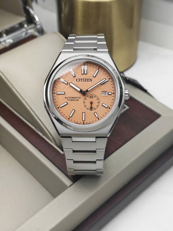 Đồng hồ Citizen Zenshin NJ0180-80Z là lựa chọn lý tưởng cho nam giới yêu thích phong cách hiện đại và bền bỉ chuẩn Nhật Bản. Sản phẩm thuộc bộ sưu tập Zenshin nổi bật với vỏ và dây Titanium cao cấp, mang lại cảm giác nhẹ, chắc tay và chống ăn mòn vượt trội. Đường kính mặt số 40.5mm, độ dày 11mm giúp đồng hồ vừa vặn cổ tay nam giới châu Á. Mặt số màu cam nổi bật, kết hợp viền bạc sang trọng, tạo điểm nhấn mạnh mẽ và cuốn hút.