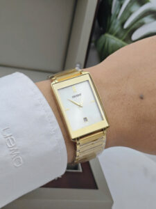 Thiết kế cổ điển và sang trọng Chiếc Orient Luxury FUNEF001C0 ghi điểm với ngoại hình đơn giản nhưng đầy lịch lãm, hướng tới những quý ông yêu thích phong cách cổ điển. Mặt số màu trắng thanh lịch làm nền cho bộ kim và các cọc số La Mã mạ vàng nổi bật, tạo nên một tổng thể sang trọng và thu hút ánh nhìn. Thiết kế này không chỉ mang lại vẻ đẹp tinh tế mà còn dễ dàng phối hợp với nhiều loại trang phục, từ công sở đến dạo phố.