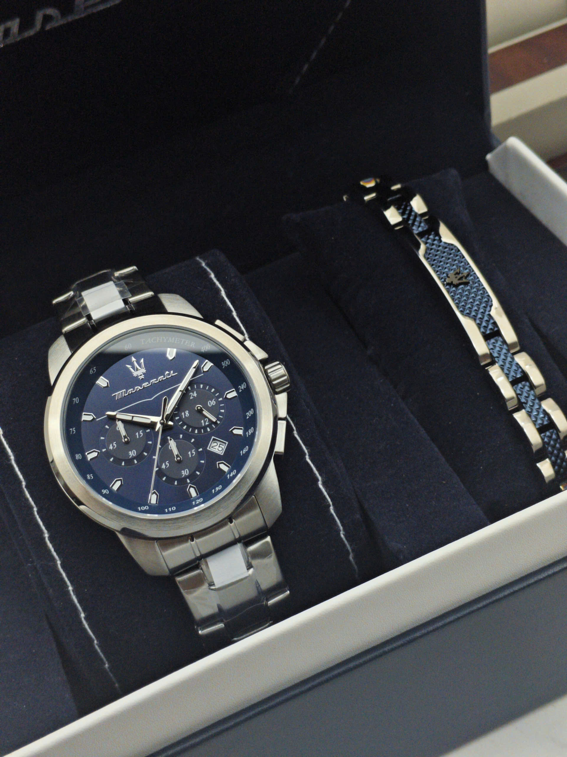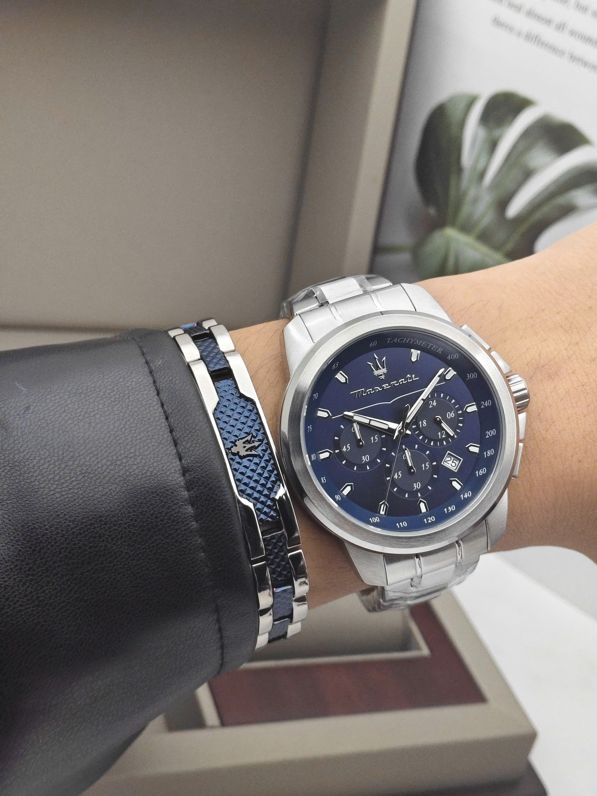 Đặc biệt bộ sản phẩm này đi theo Set gồm 1 đồng hồ Maserati Successo R8851121016 và 1 chiếc vòng tay.