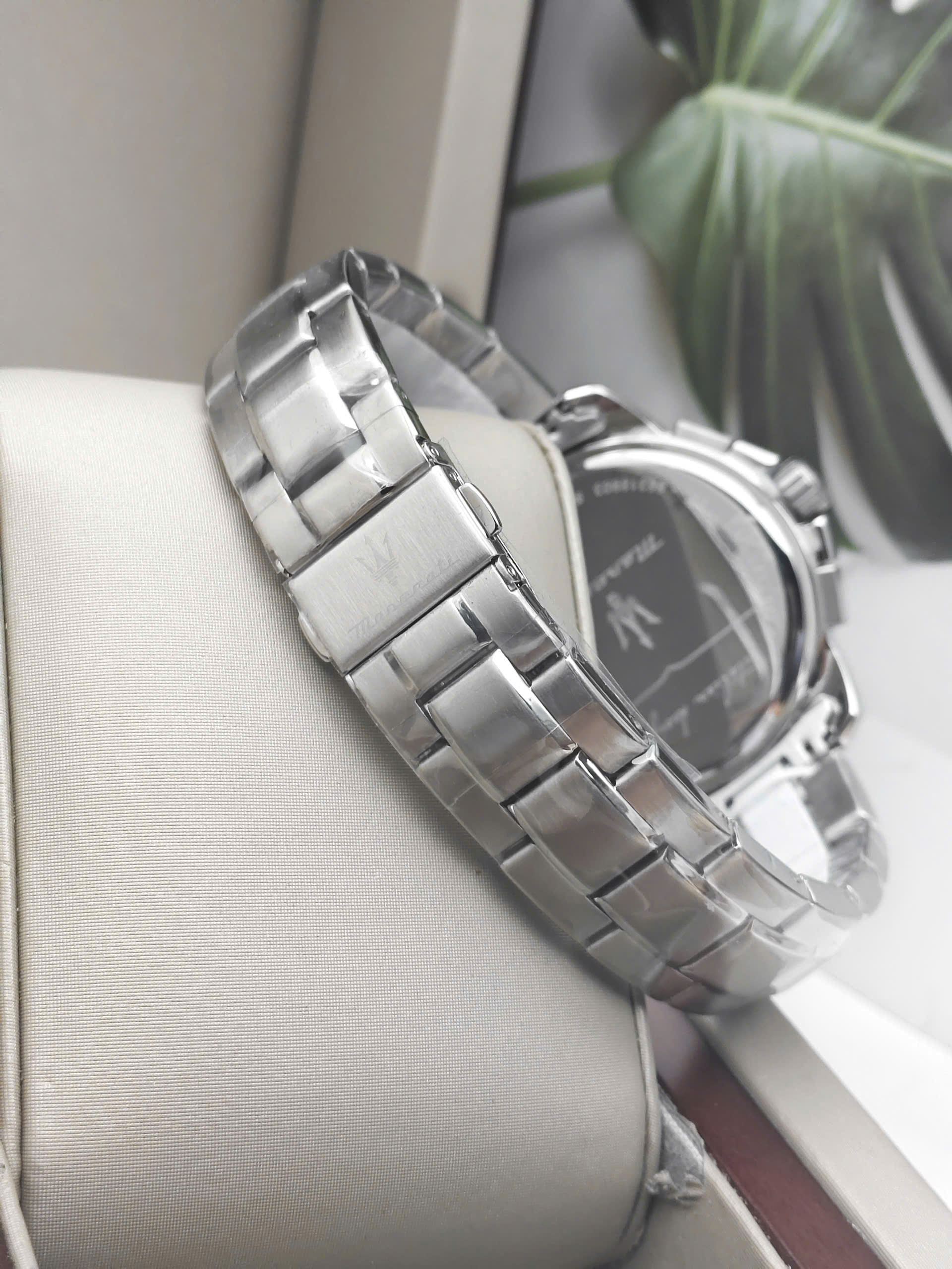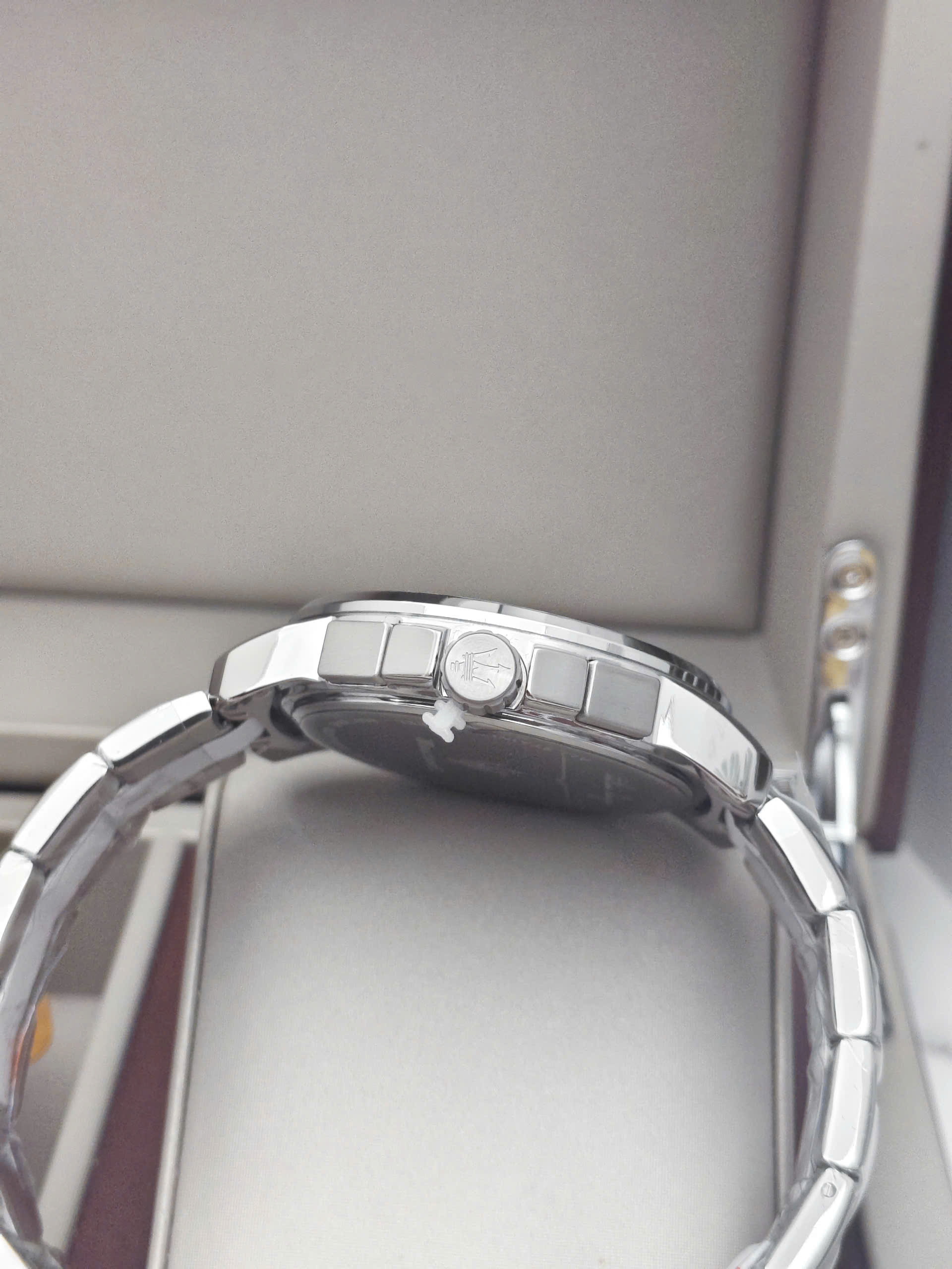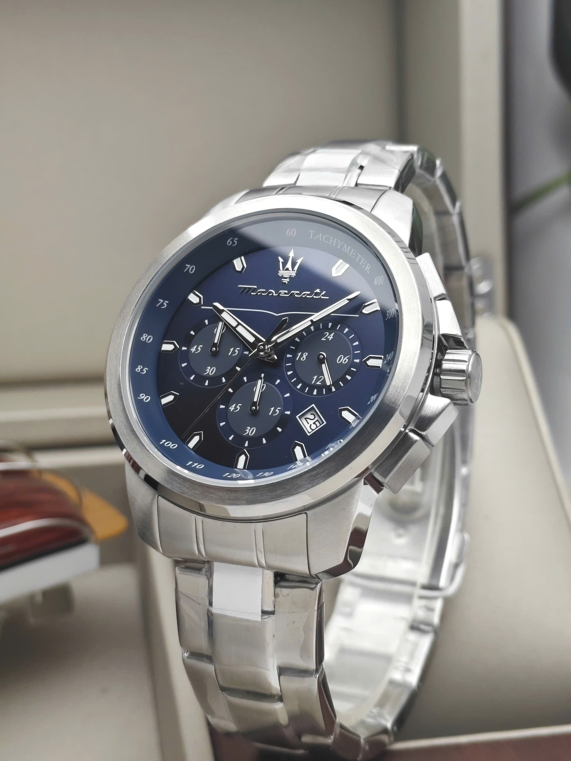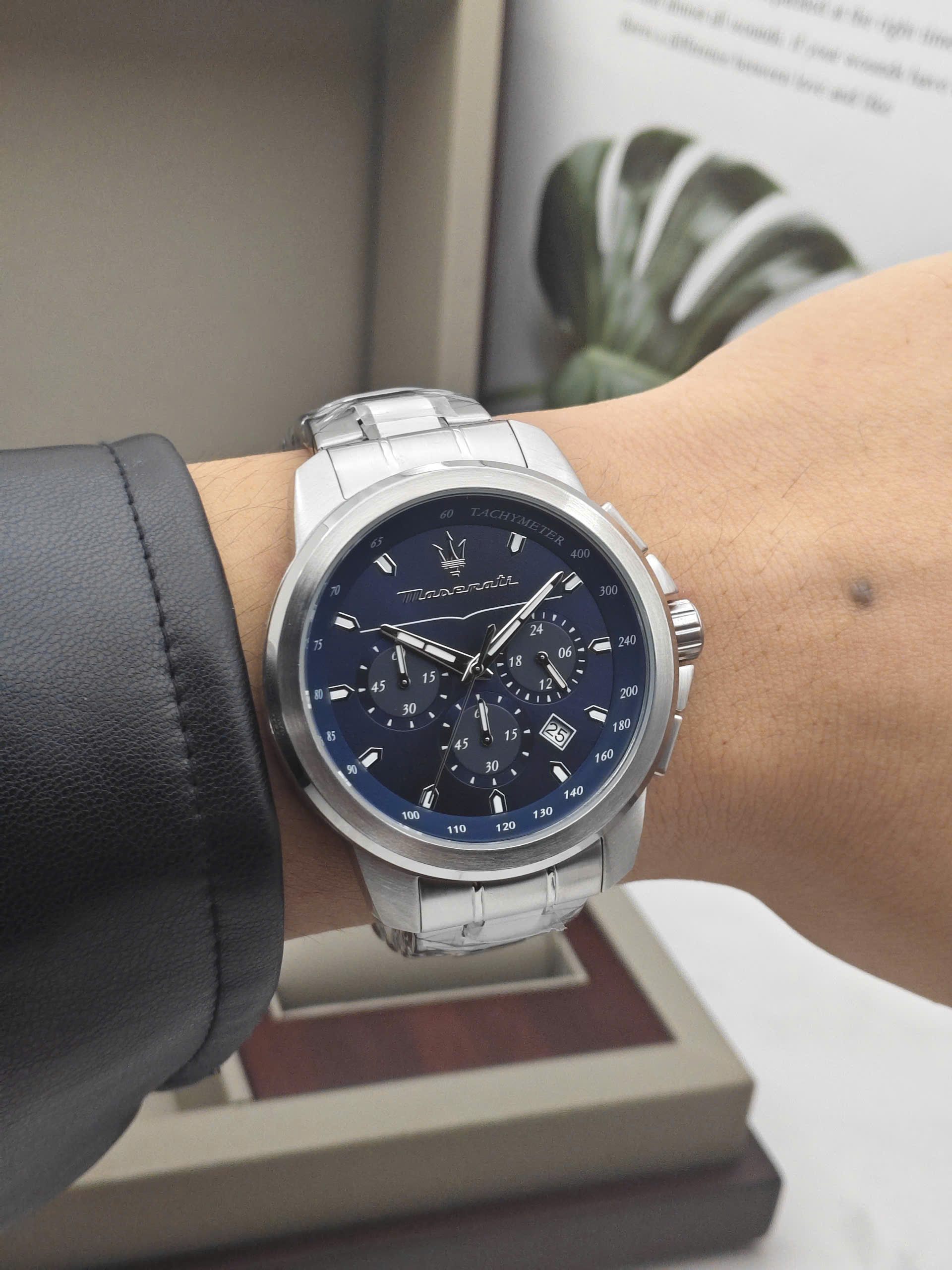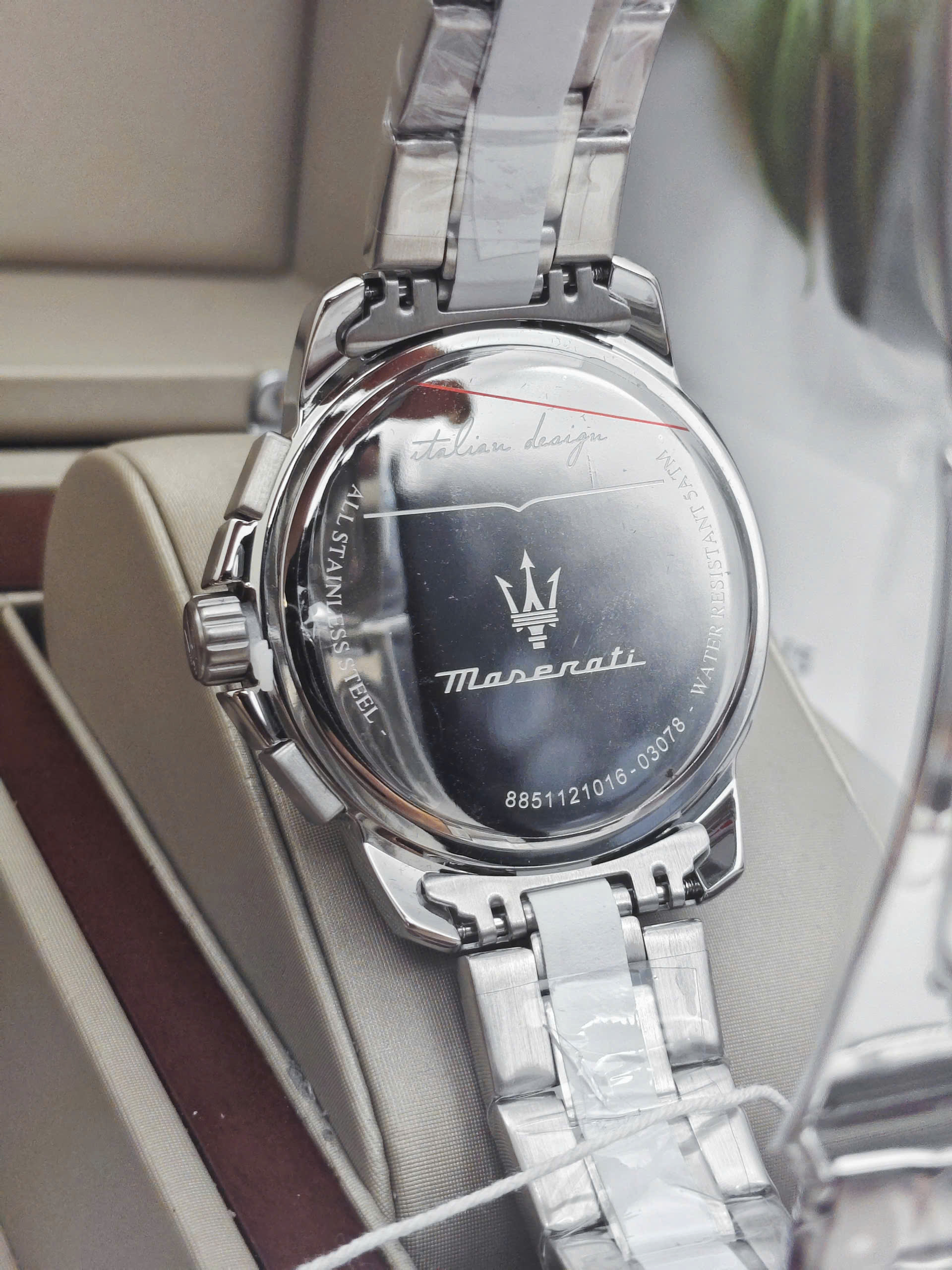 Không chỉ nổi bật về ngoại hình, Maserati Successo R8851121016 còn sở hữu độ chính xác vượt trội nhờ bộ máy Quartz (thạch anh) đáng tin cậy, thường sử dụng bộ máy Hattori VD53, đảm bảo hiệu suất ổn định và ít cần bảo dưỡng. Bộ máy này cung cấp chức năng Chronograph (bấm giờ) phức tạp và tính năng hiển thị ngày tiện lợi, tăng cường tính ứng dụng trong cuộc sống hàng ngày. Để bảo vệ vẻ đẹp và các chức năng bên trong, đồng hồ được trang bị mặt kính khoáng (Mineral Crystal) chống trầy xước và khả năng chịu nước 5 ATM, cho phép người dùng an tâm sử dụng khi đi mưa hoặc tắm. Tổng thể, R8851121016 là lựa chọn hoàn hảo, là biểu tượng của thành công và phong cách lịch lãm, hiện đại.