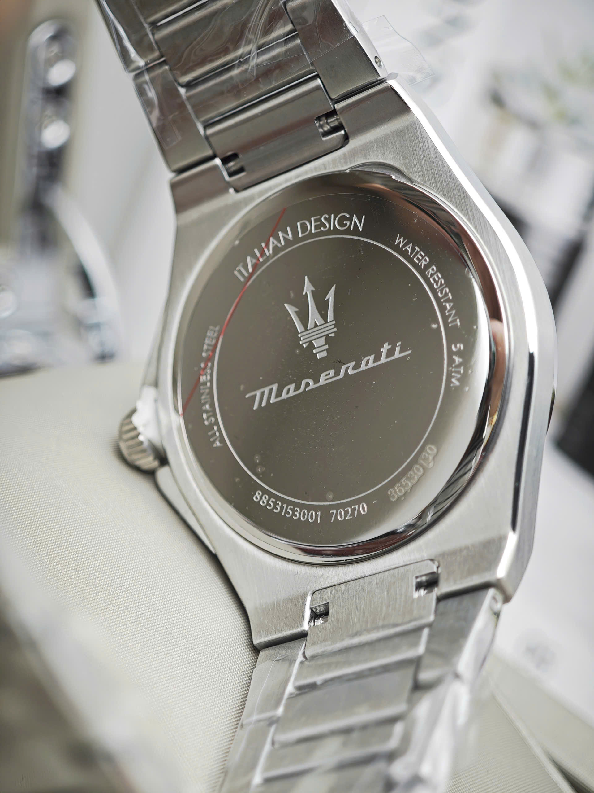 Chiếc đồng hồ này có đường kính vỏ 40 mm, là kích thước phổ biến và vừa vặn với nhiều cổ tay nam giới, cùng với độ dày vỏ chỉ khoảng 7.8 mm, rất mỏng so với mặt bằng chung. Maserati Velocità R8853153001 sử dụng bộ máy thạch anh đáng tin cậy của Seiko Instruments Inc., giúp đồng hồ luôn hoạt động chính xác và không cần lên dây cót thủ công. Mặt kính khoáng (Mineral crystal) được trang bị để bảo vệ mặt số khỏi các va chạm và trầy xước thông thường.