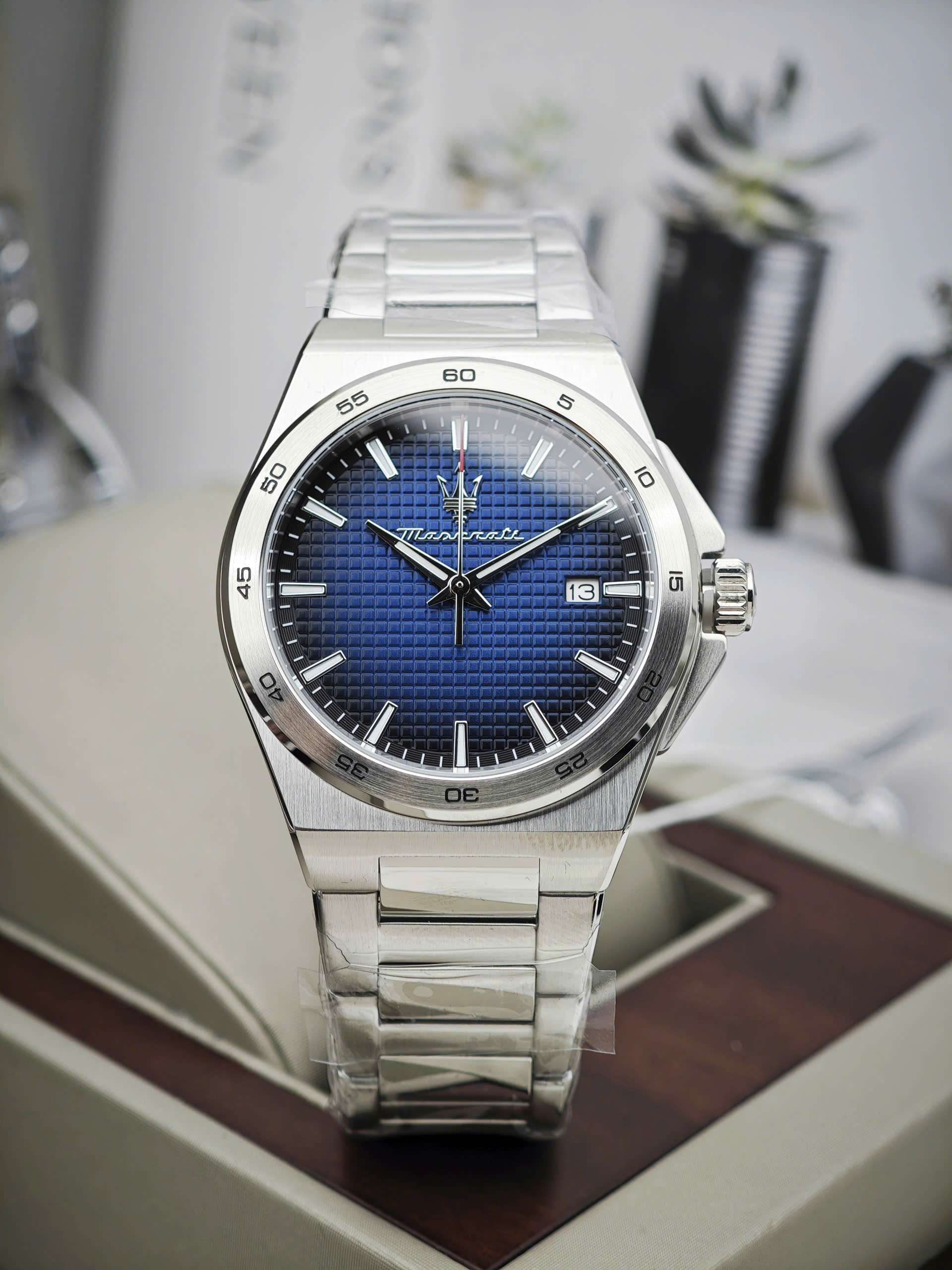 Đồng hồ Maserati Velocità R8853153001 là một mẫu đồng hồ chạy pin (Quartz) thanh lịch, nổi bật với thiết kế mảnh dẻ (Slim) và tông màu bạc chủ đạo. Toàn bộ vỏ và dây đeo được làm từ thép không gỉ, mang lại vẻ ngoài bền bỉ và sáng bóng. Điểm nhấn nổi bật của chiếc đồng hồ này là mặt số tròn màu xanh dương (Blue) sâu thẳm, tạo nên sự tương phản sang trọng và hiện đại với kim và cọc số màu bạc. Chiếc đồng hồ này là lựa chọn lý tưởng cho những ai ưa chuộng phong cách tối giản nhưng vẫn thể hiện nét tinh tế, nam tính.