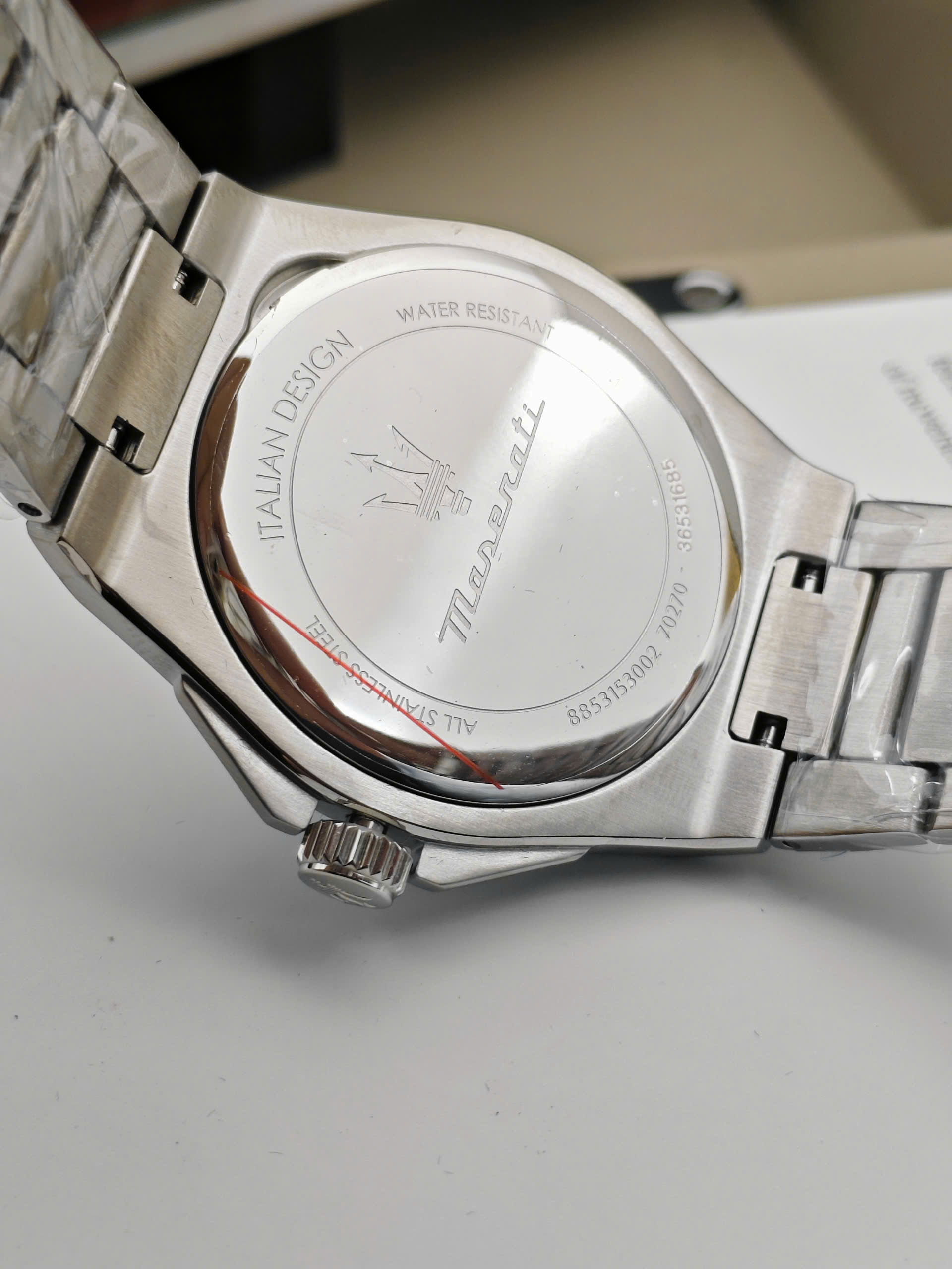 Về chức năng, Maserati R8853153002 cung cấp khả năng hiển thị thời gian cơ bản (giờ, phút, giây) và có thêm tính năng hiển thị ngày (Date Only) ở một cửa sổ nhỏ trên mặt số, rất tiện dụng cho sinh hoạt hàng ngày. Đồng hồ có khả năng chống nước ở mức 50 mét (50M Water Resistance). Mức chống nước này cho phép bạn đeo đồng hồ khi rửa tay, đi mưa hoặc thậm chí là bơi lội nhẹ, tăng tính ứng dụng và độ bền cho sản phẩm.