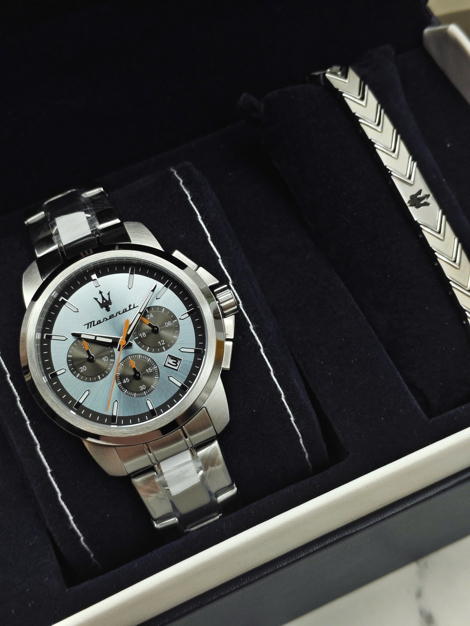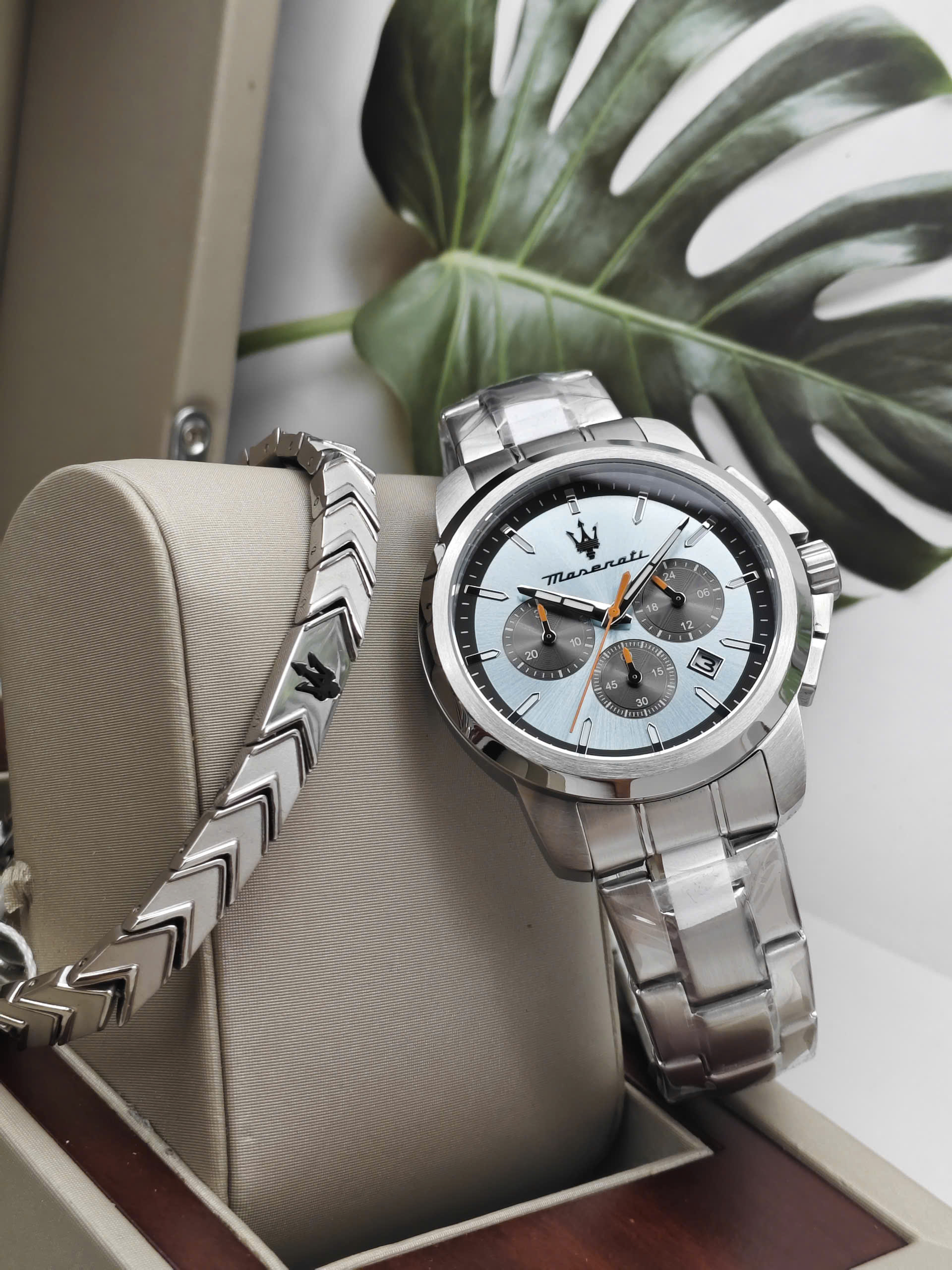 Đặc biệt bộ sản phẩm này đi theo Set gồm 1 đồng hồ Maserati Successo R8873621045 và 1 chiếc vòng tay.