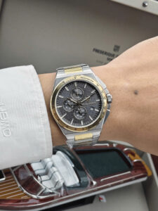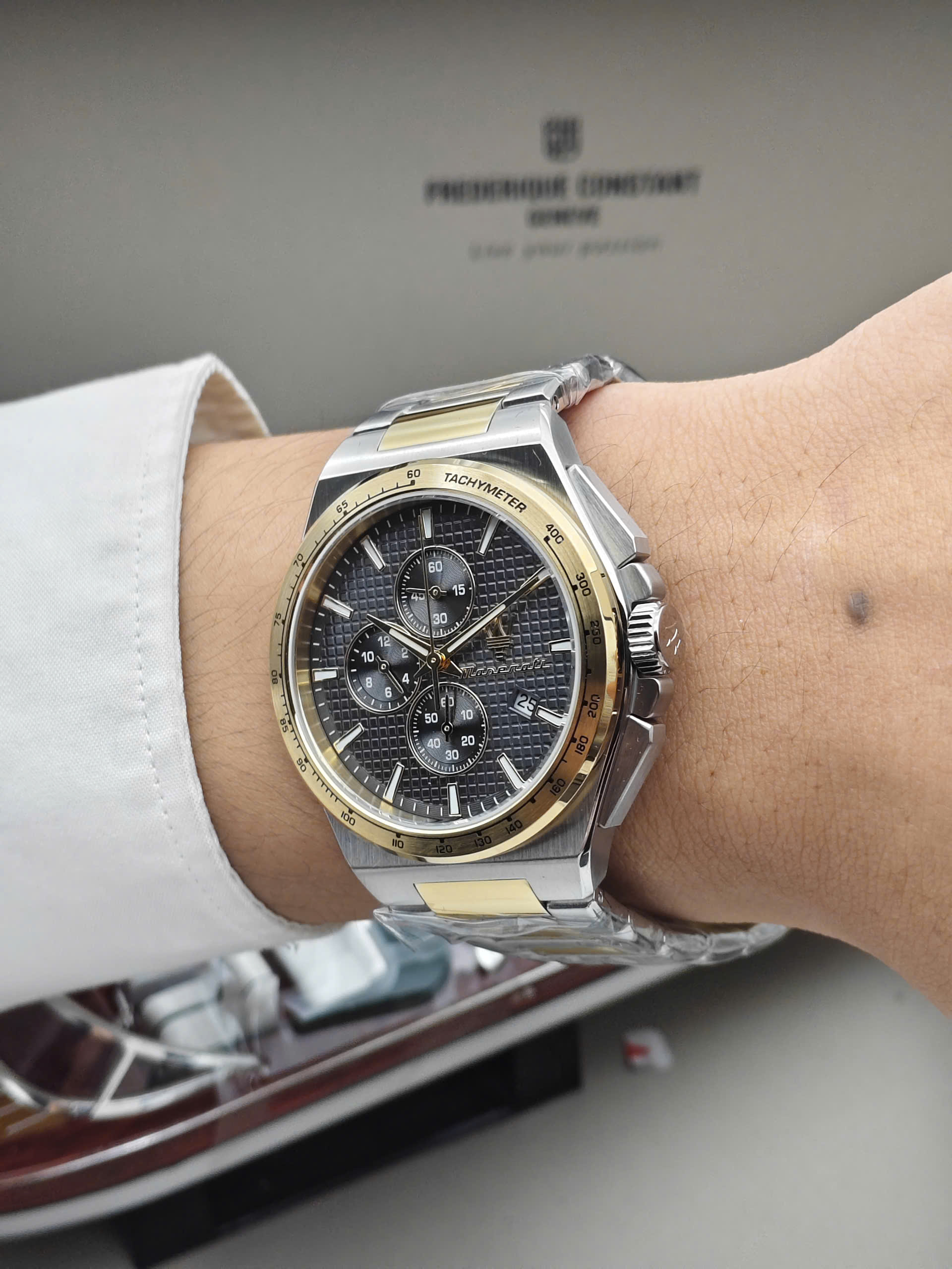 Mặc dù là dòng Chronograph (bấm giờ thể thao), chiếc đồng hồ này vẫn giữ được sự thanh thoát với thiết kế “Slim” (mảnh dẻ). Vỏ đồng hồ có đường kính 41 mm và độ dày chỉ 10mm, kích thước lý tưởng để vừa vặn thoải mái trên cổ tay mà không gây cảm giác cồng kềnh. Bên trong là bộ máy Quartz Miyota 0S10 bền bỉ, được bảo vệ bởi lớp kính khoáng (Mineral crystal) chịu lực tốt, giúp đồng hồ hoạt động chính xác và ổn định theo thời gian.