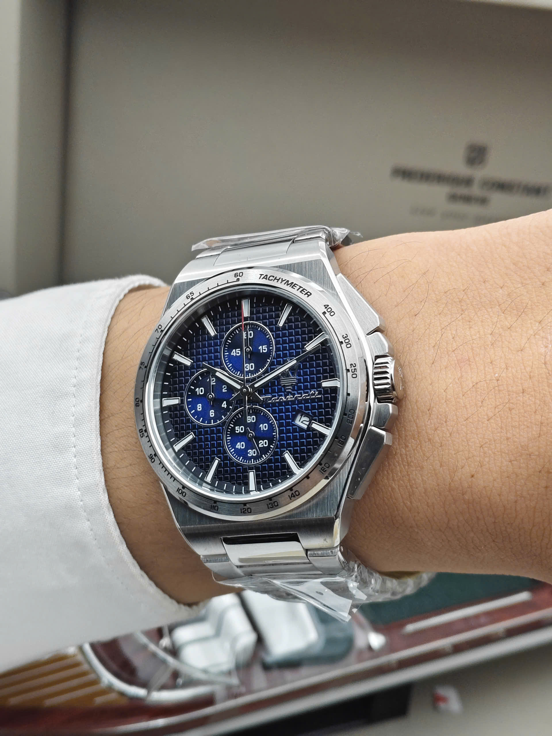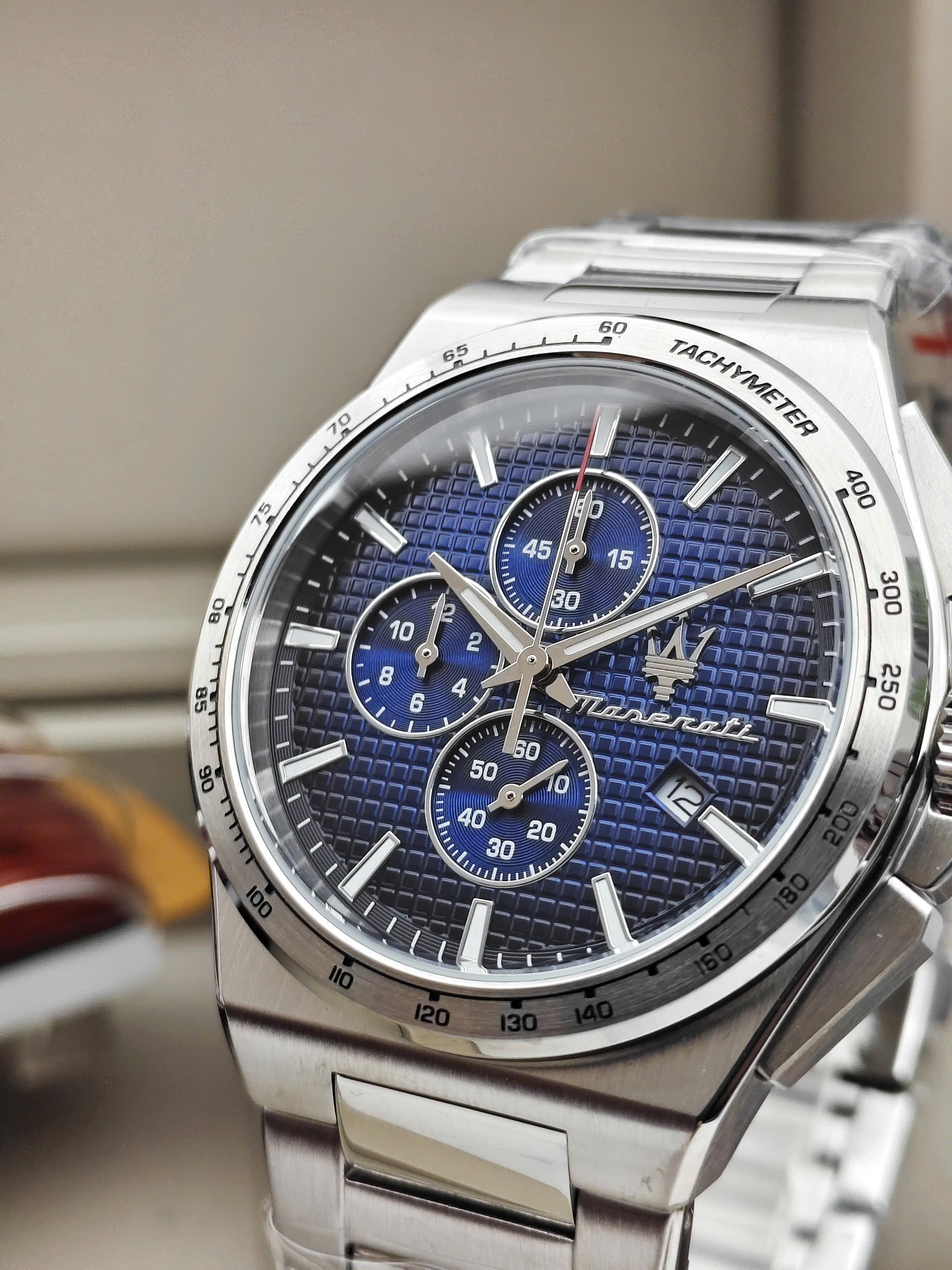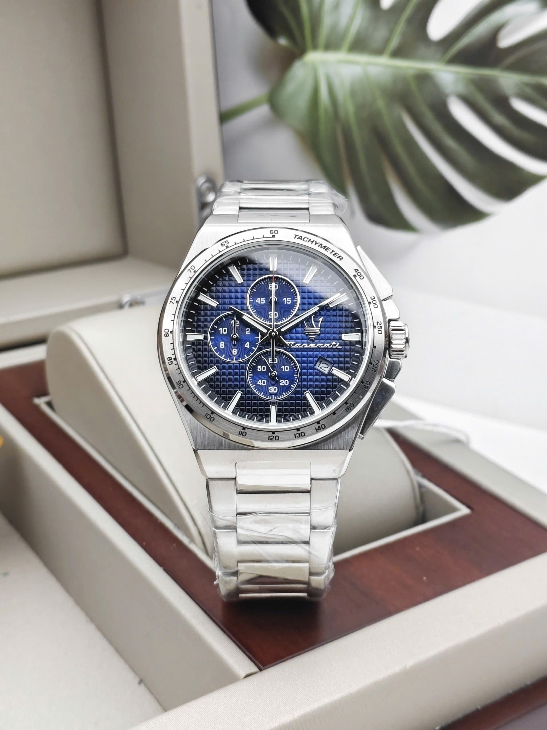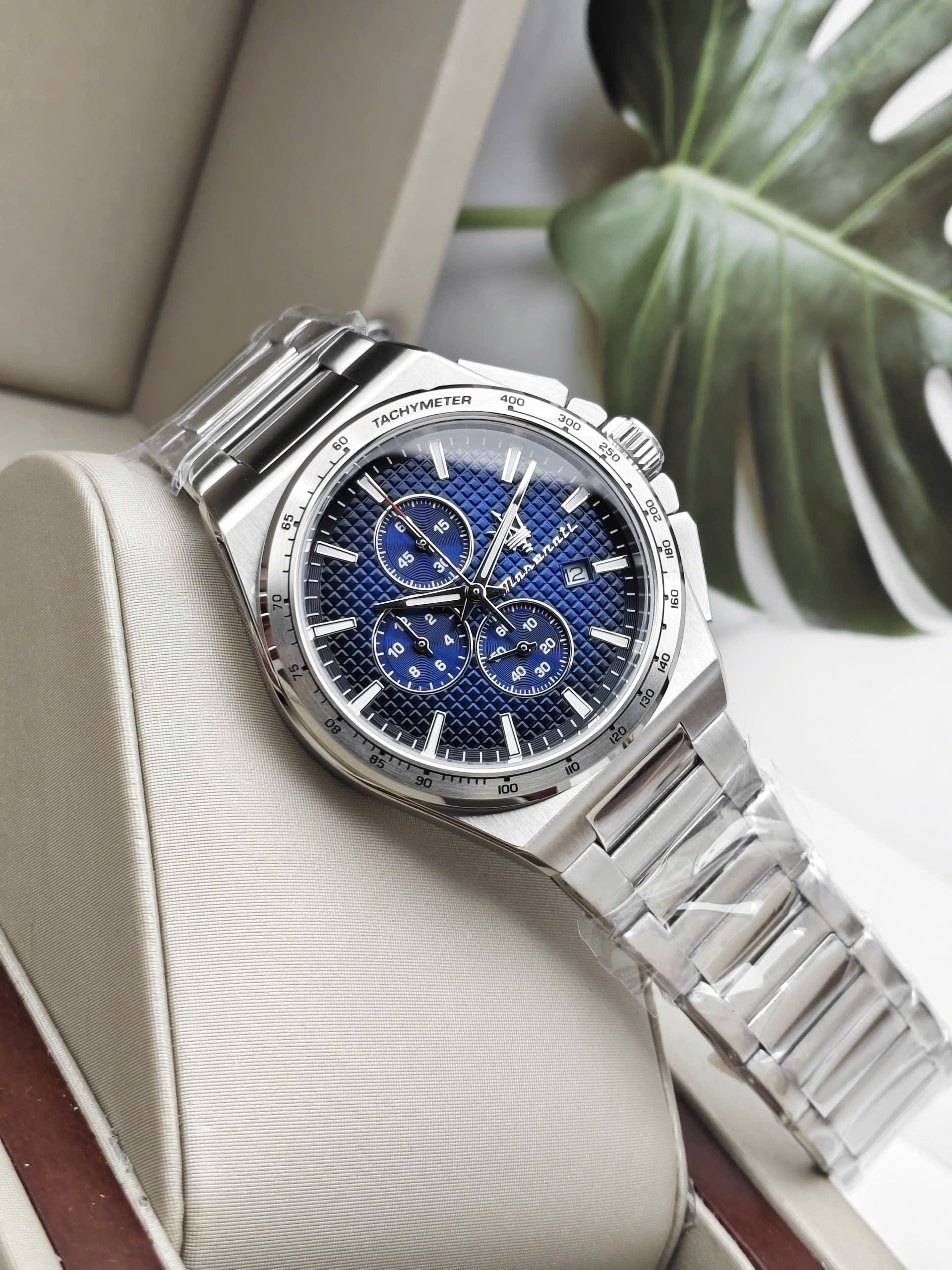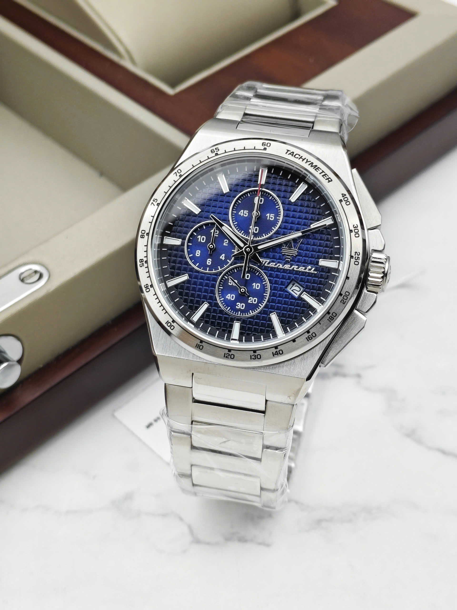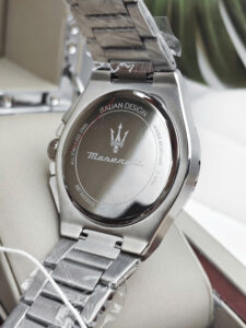 Bên cạnh chức năng hiển thị thời gian chính xác, Maserati R8873653003 còn được trang bị tính năng bấm giờ thể thao (Chronograph), hoàn hảo cho những ai cần đo đếm thời gian. Viền bezel cố định có in thang đo Tachymeter, cho phép tính toán tốc độ. Ngoài ra, đồng hồ có khả năng chống nước 5 ATM (5 Bar), cho phép bạn yên tâm đeo đồng hồ khi đi mưa hoặc tắm vòi sen. Dây đeo dạng mắt xích với khóa gập bấm nút cũng đảm bảo độ an toàn và dễ dàng sử dụng.