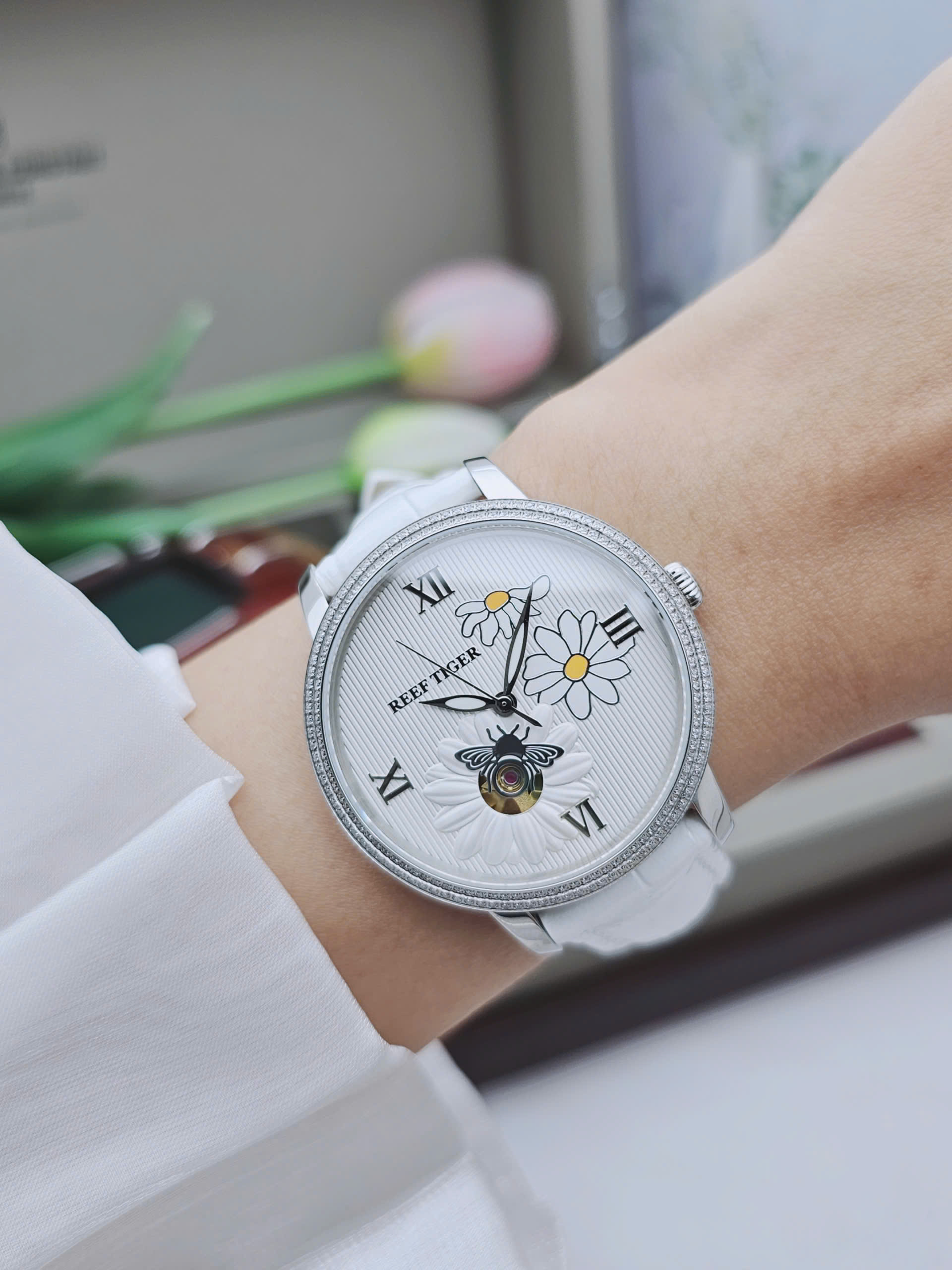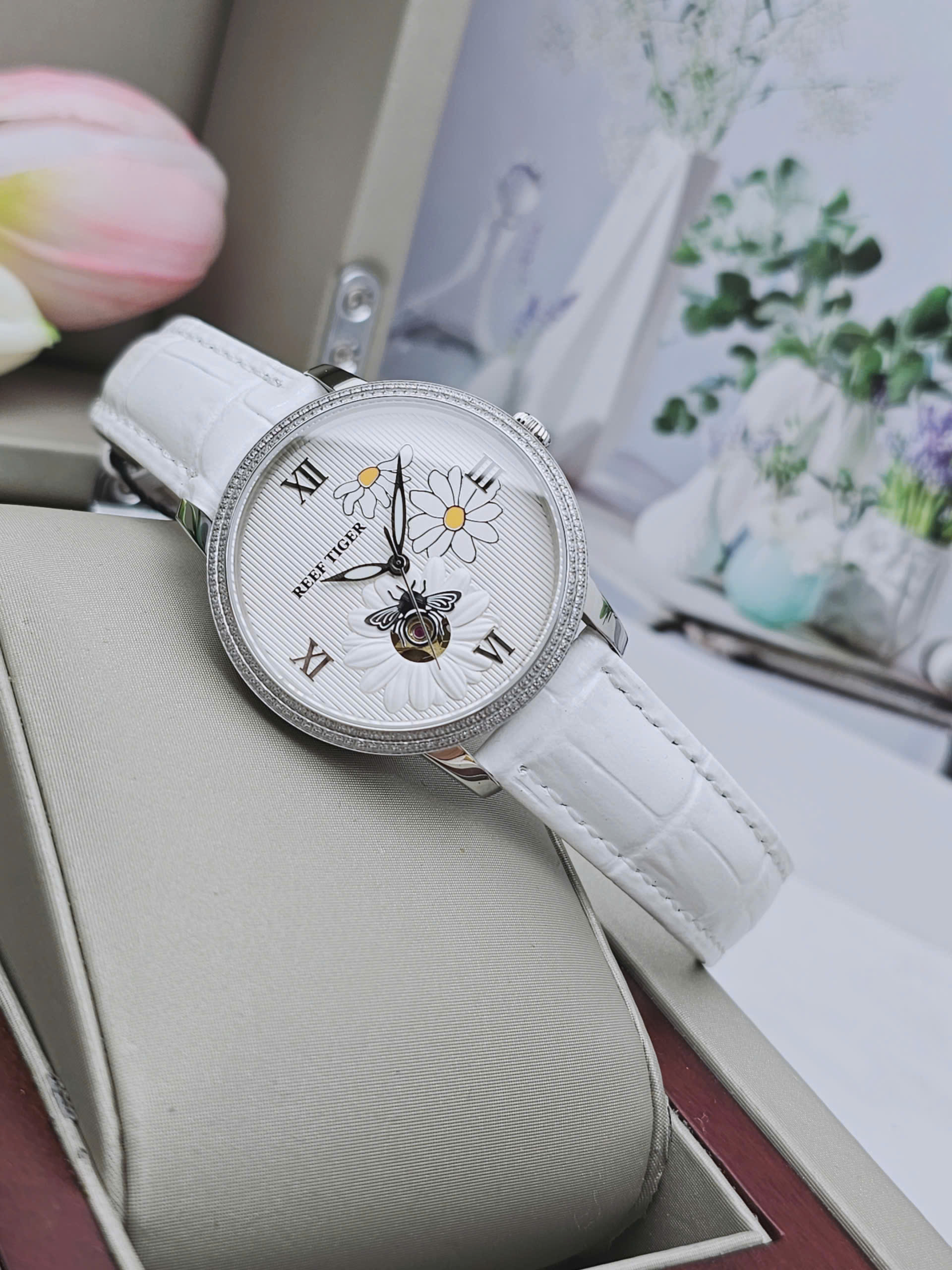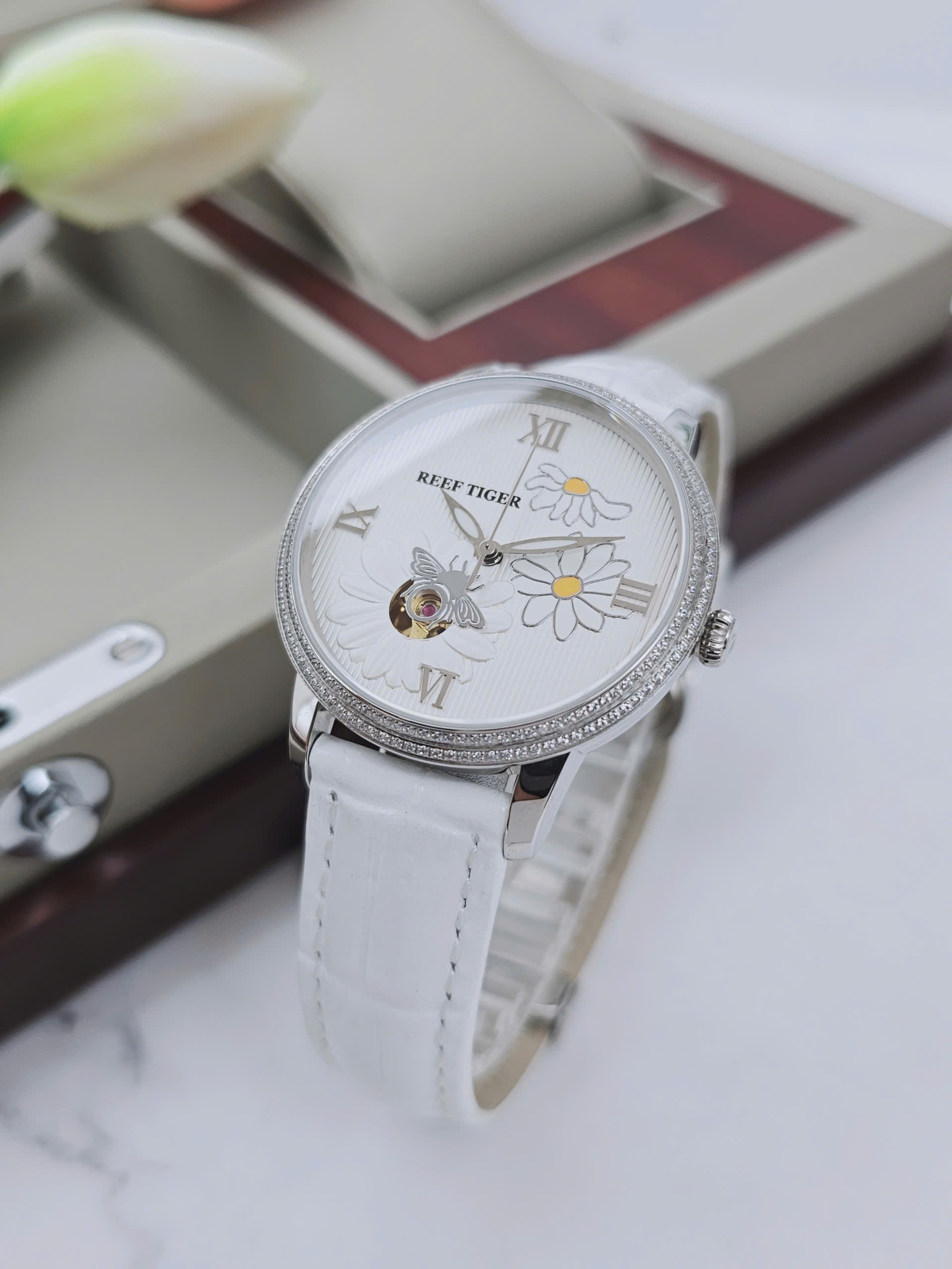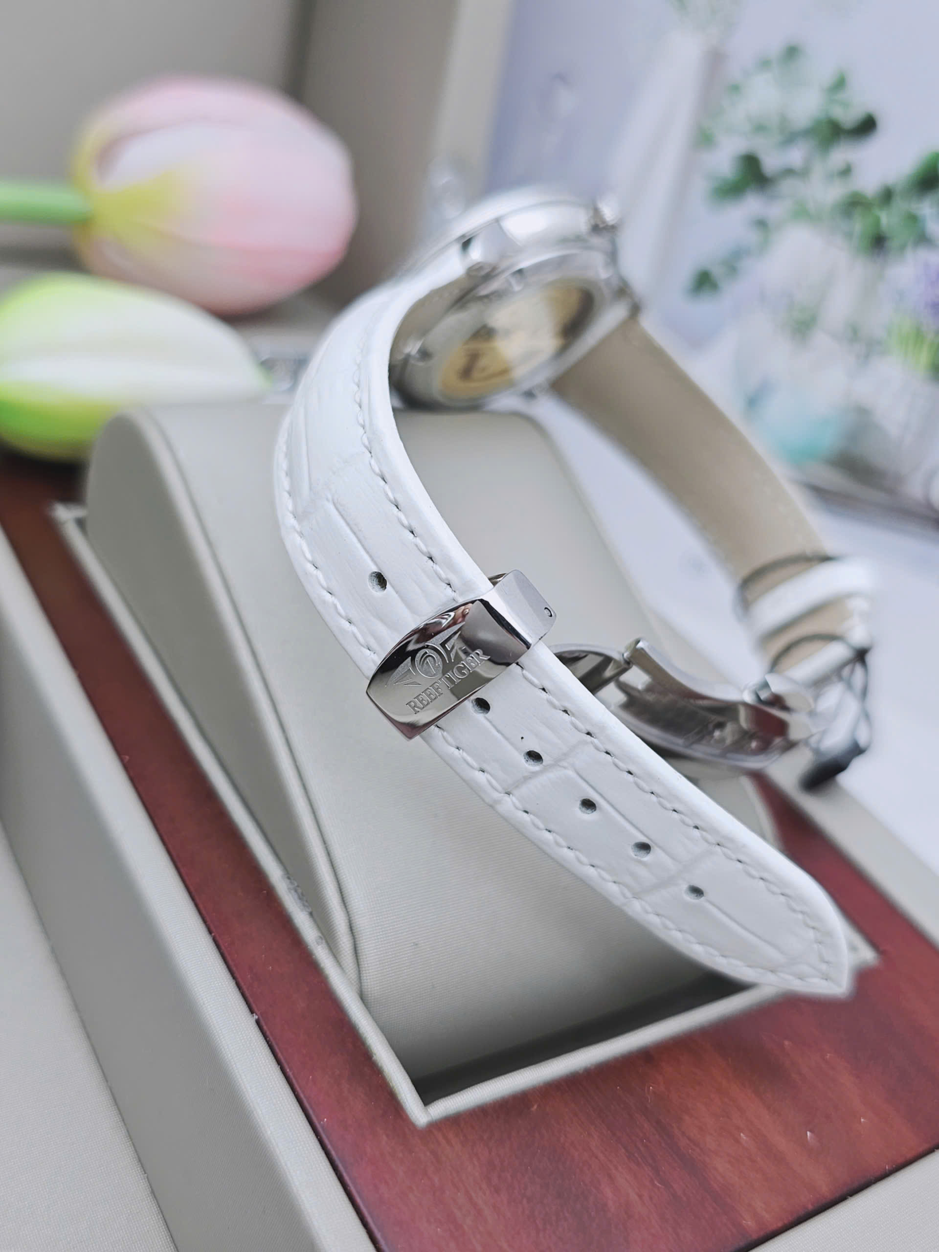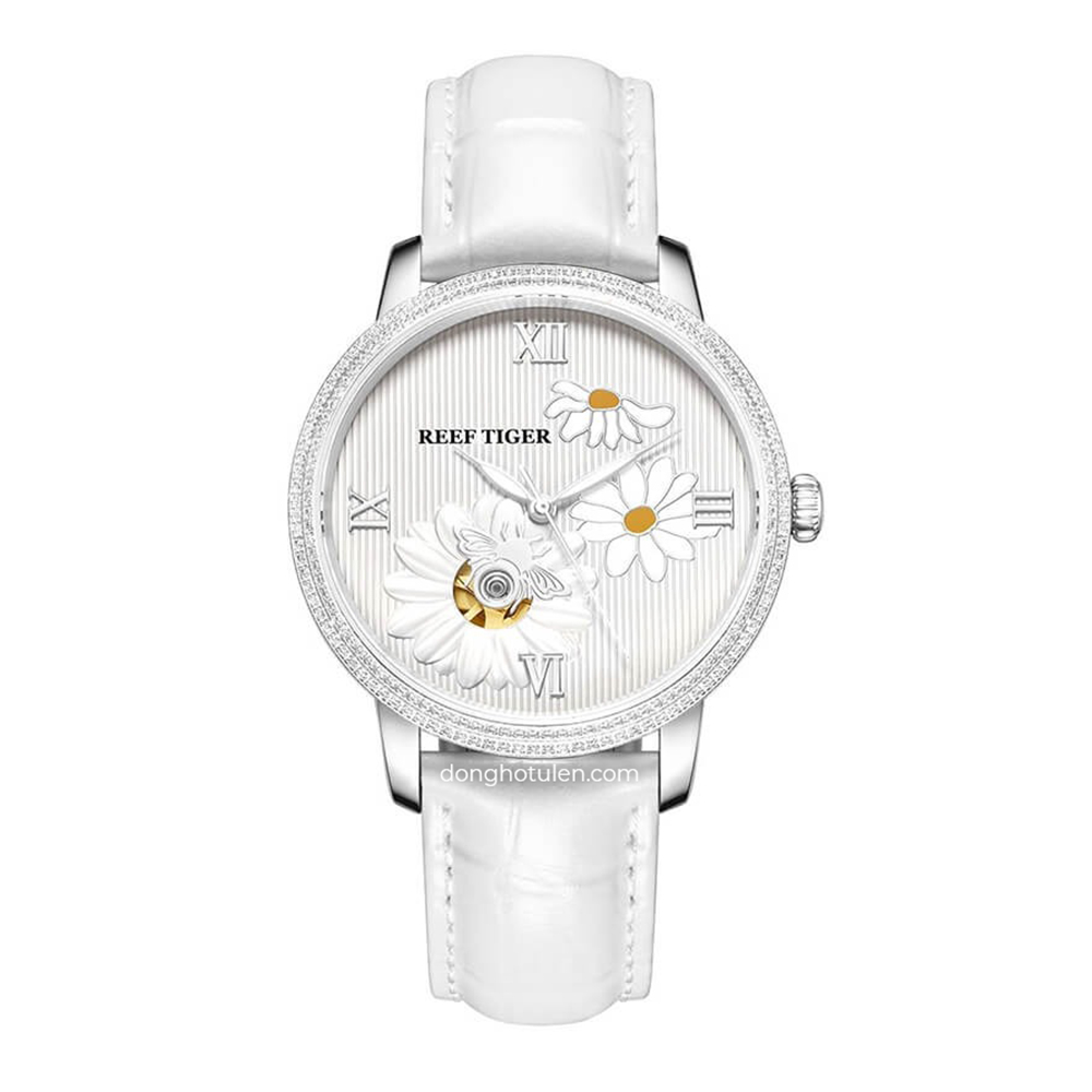 Dây da trắng mềm mại mang đến cảm giác êm ái và tôn lên nét nữ tính dịu dàng. Sự kết hợp giữa dây da sáng màu và viền bạc inox tạo điểm nhấn tinh tế nhưng vẫn nổi bật trên cổ tay. Vỏ thép không gỉ chắc chắn giúp bảo vệ bộ máy bên trong trước tác động thường ngày. Xuất xứ Trung Quốc theo tiêu chuẩn chất lượng của Reef Tiger đảm bảo độ hoàn thiện cao và đáng tin cậy. Đây là lựa chọn lý tưởng cho quý cô yêu phong cách thanh lịch hiện đại sang.