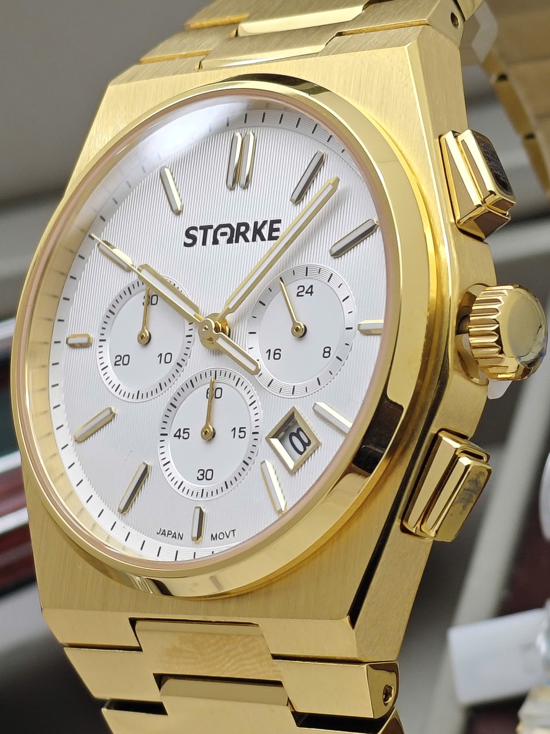 Để đáp ứng những tiêu chuẩn khắt khe nhất, STARKE đã trang bị cho mẫu SK187AM.GGW những vật liệu cao cấp hàng đầu. Toàn bộ phần vỏ và dây đeo đều được chế tác từ thép không gỉ 316L, ứng dụng công nghệ mạ PVD tiên tiến giúp sản phẩm giữ được độ sáng bóng và bền màu vượt thời gian. Mặt số được bảo vệ an toàn dưới lớp kính Sapphire chống trầy xước ưu việt, duy trì vẻ đẹp trong trẻo không tì vết. Trái tim của đồng hồ là bộ máy Quartz (pin) chính xác, đảm bảo thời gian luôn được đo đếm một cách ổn định và đáng tin cậy.