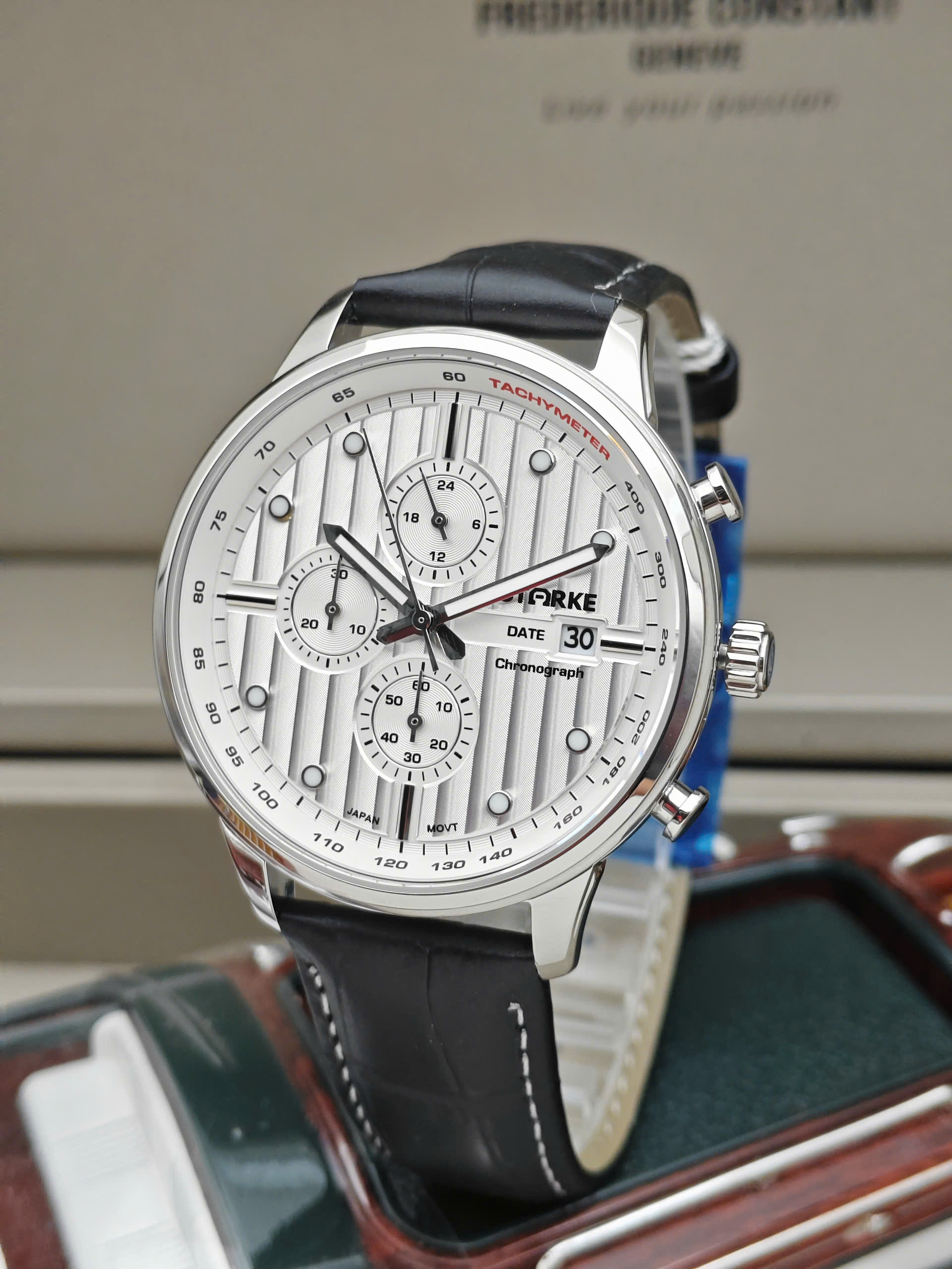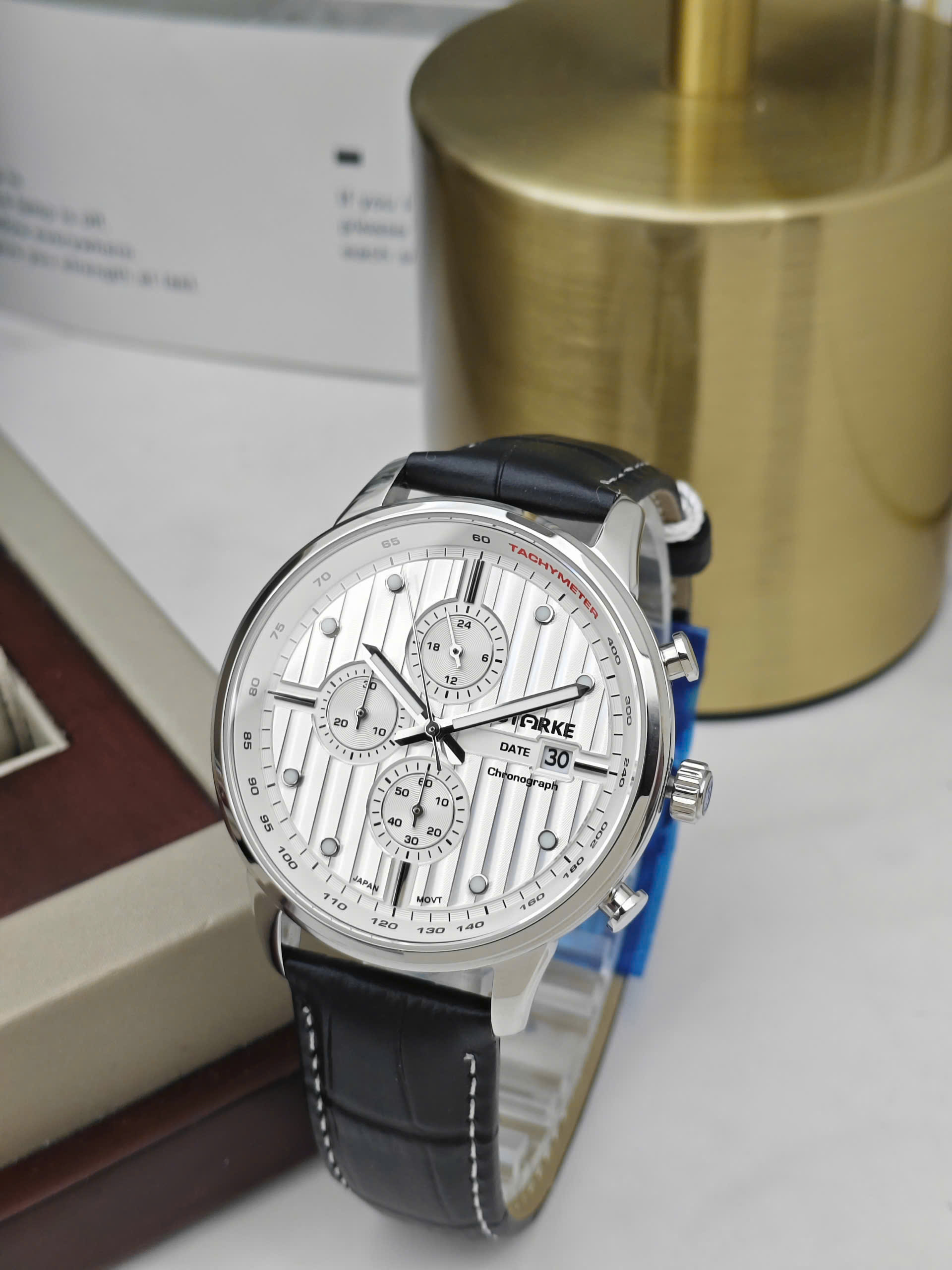 Đồng hồ nam Starke SK195PM Chronograph Mặt Trắng – Viền Trắng – Dây da đen
