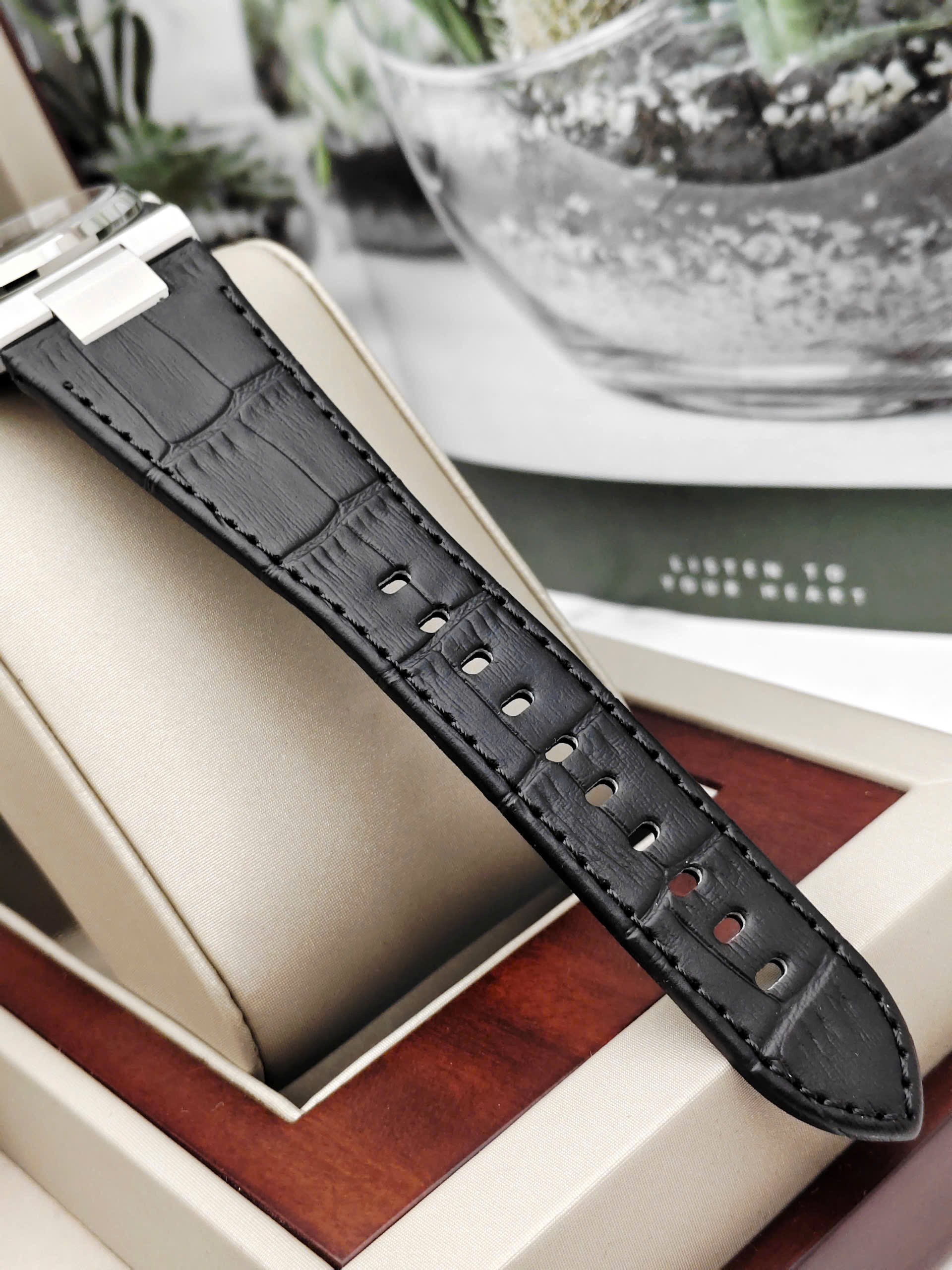 Chất Liệu Cao Cấp Và Bền Bỉ Đồng hồ được trang bị mặt kính Sapphire nguyên khối chống trầy xước cực tốt, đảm bảo độ trong suốt và bền đẹp theo thời gian. Vỏ máy làm từ thép không gỉ 316L chắc chắn, giúp bảo vệ tối ưu bộ máy bên trong. Với khả năng chống nước lên đến 10 ATM (100 mét), bạn có thể hoàn toàn yên tâm khi đeo đồng hồ đi mưa, rửa tay hay thậm chí là đi bơi, mặc dù nhà sản xuất khuyên nên hạn chế tiếp xúc nước lâu để bảo quản dây da tốt nhất.